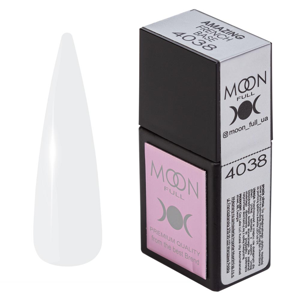 MOON Amazing French Base №AFB4038, (12 ml), 1 pz. Eccellente base di media densita’. Adatto a tutti i tipi di unghie. Non cola, autolivellante, rinforza la lamina ungueale. Compatibile con smalti gel di altre marche. Ideale per french manicure. Applicazione: Applicare 1 strato sulla lamina ungueale preparata. Polimerizzare in una lampada UV per 120 secondi, LED fino a 60-90 secondi.