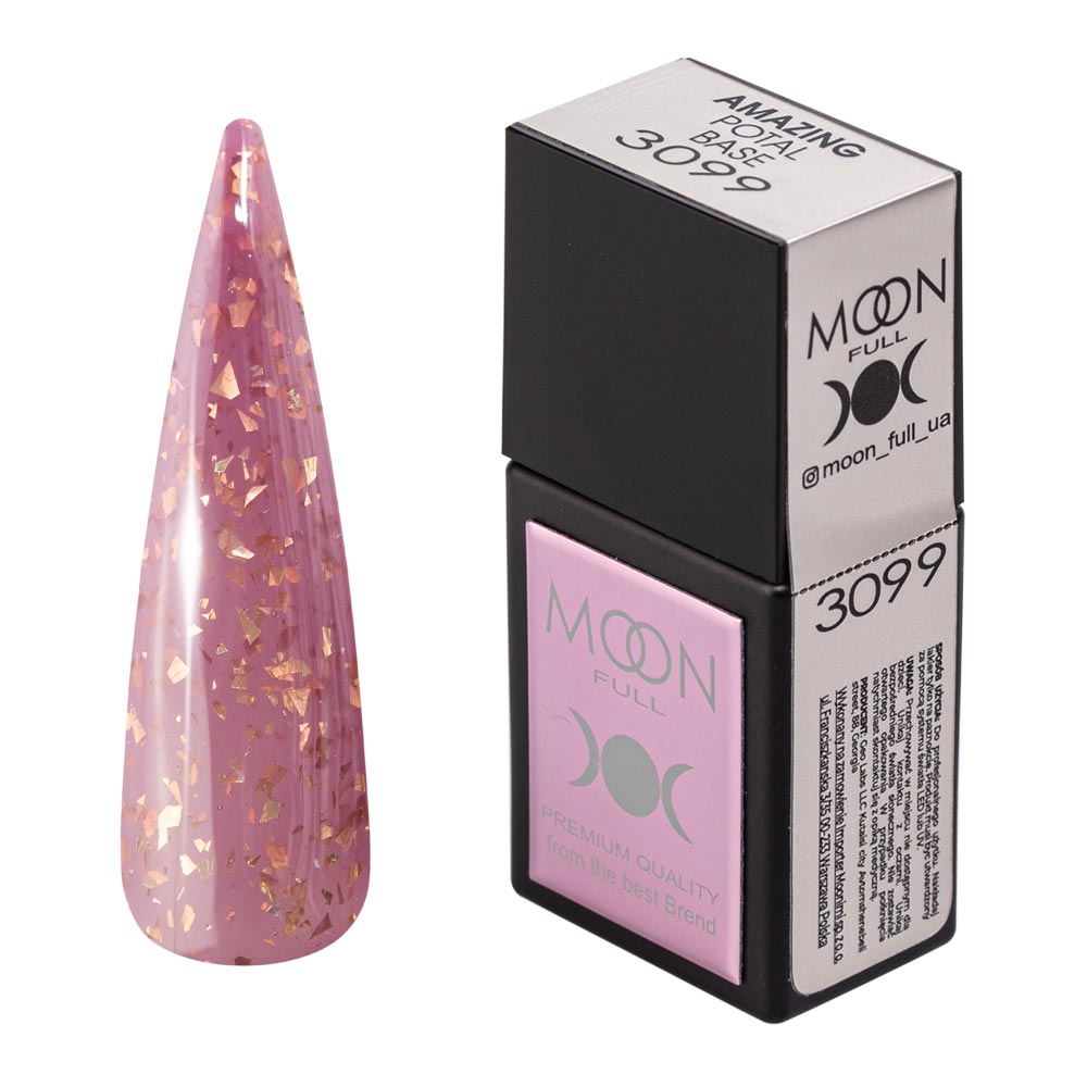 MOON Amazing Potal Base №APB3099, (12 ml), 1 pz. Eccellente base di media densita’. Adatto a tutti i tipi di unghie. Non cola, autolivellante, rinforza la lamina ungueale. Compatibile con smalti gel di altre marche. Ideale per french manicure. Applicazione: Applicare 1 strato sulla lamina ungueale preparata. Polimerizzare in una lampada UV per 120 secondi, LED fino a 60-90 secondi.