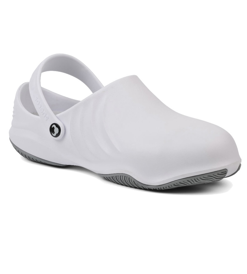 ISACCO ZOCCOLO CON PUNTALE MAGNUS BIANCO sia per uomo che per donna. Utilizzato in ospedale (da infermiere, medico e dottore), in cucina (cuoco), negozi alimentari o estetista. Antiscivolo, antiolio, antiacido, con puntale in acciaio CE 89/686/CEE Categoria II, S1 - EN ISO 20344:2011, 5 10
