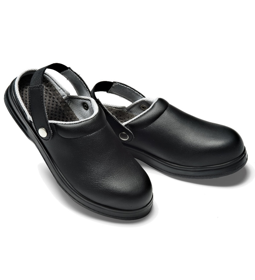 ISACCO ZOCCOLO CON PUNTALE NERO. Utilizzato in ospedale (da infermiere, medico e dottore), in cucina (cuoco), negozi alimentari o estetista. Antiscivolo, antistatico, antiolio, antiacido, con puntale in acciaio marcatura CE EN 345-1 S1.