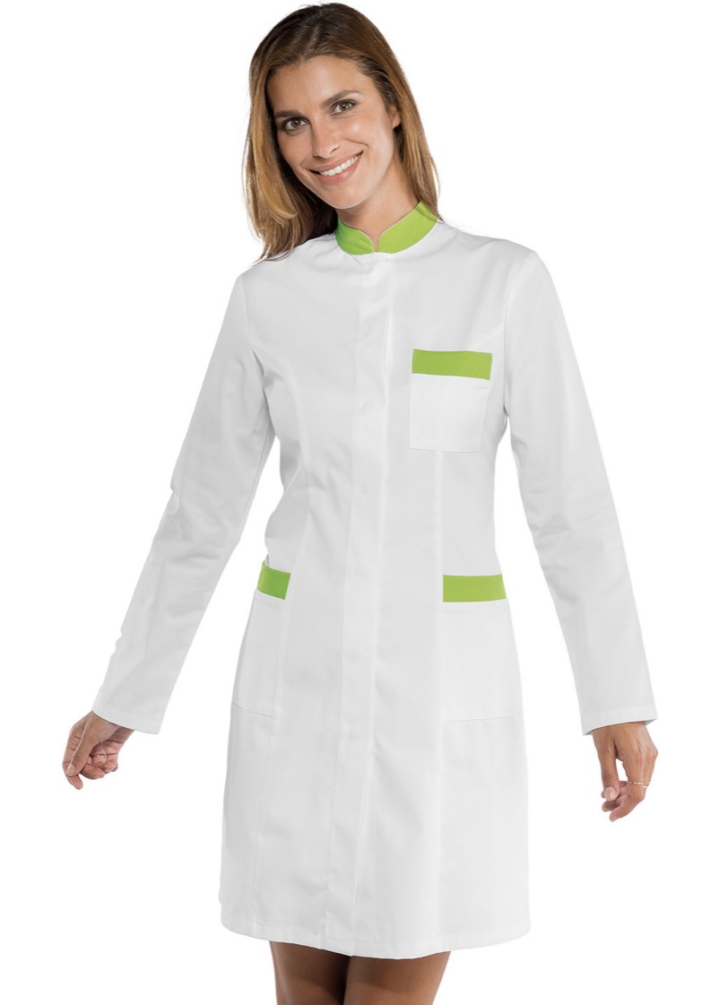 ISACCO CAMICE CATALINA BIANCO + MELA 65% POLYESTER 35% COTTON è un camice da donna a manica lunga. Ottimo nel settore alimentare estetico e sanitario. Divisa da lavoro per aziende di servizi. Alimentarista, Asa, Assistente alla poltrona, Camice paziente, Chirurgo, Dentista, Dermatologo, Dottore, Dottoressa, Farmacista, Fisioterapista, Ginecologo, Infermiera, Macellaio, Massaggiatore, Medico, Oss, Paramedico, Salumiere, Veterinario.
