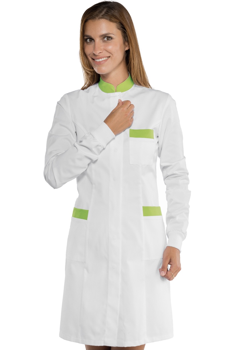 ISACCO CAMICE CATALINA POLSI IN MAGLIA BIANCO + MELA 65% POLYESTER 35% COTTON è un camice da donna a manica lunga. Ottimo nel settore alimentare estetico e sanitario. Divisa da lavoro per aziende di servizi. Alimentarista, Asa, Assistente alla poltrona, Camice paziente, Chirurgo, Dentista, Dermatologo, Dottore, Dottoressa, Farmacista, Fisioterapista, Ginecologo, Infermiera, Macellaio, Massaggiatore, Medico, Oss, Paramedico, Salumiere, Veterinario.
