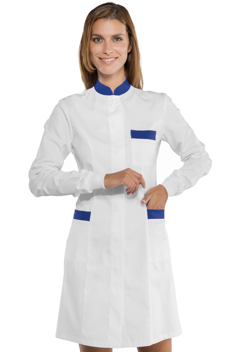 ISACCO CAMICE CATALINA POLSI IN MAGLIA BIANCO+BLU CINA 65% POLYESTER 35% COTTON è un camice da donna a manica lunga. Ottimo nel settore alimentare estetico e sanitario. Divisa da lavoro per aziende di servizi. Alimentarista, Asa, Assistente alla poltrona, Camice paziente, Chirurgo, Dentista, Dermatologo, Dottore, Dottoressa, Farmacista, Fisioterapista, Ginecologo, Infermiera, Macellaio, Massaggiatore, Medico, Oss, Paramedico, Salumiere, Veterinario.