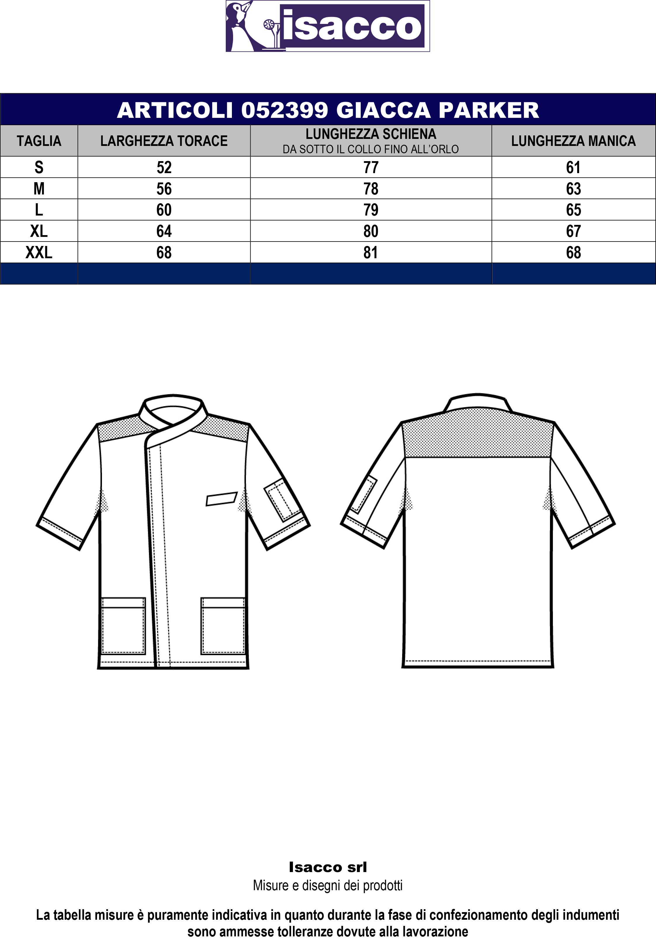 ISACCO CASACCA PARKER SUPERDRY NERO 100% POLYESTER SUPERDRY MICROFIBRA con tessuto antimacchia. Adatta al settore sanitario, estetico e alimentare. Utilizzata come divisa da lavoro per aziende di servizi, pulizie, industria e parrucchieri. Tasche e taschino, abbottonatura nascosta e bottoni a pressione. Alimentarista, Artigiano, Gastronomo, Macellaio, Magazziniere, Panettiere, Pasticcere, Salumiere