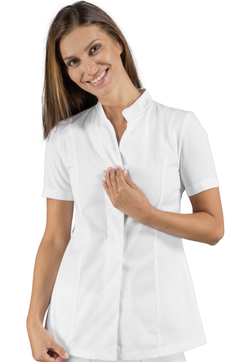ISACCO CASACCA HIBISCUS BOHEME BIANCO 100% POLYESTER BOHÉME è una camicia da donna a mezza manica. Per settore estetico e sanitario. Ottima divisa da lavoro per estetiste, massaggiatrici e negozi alimentari. L'indumento è sciancrato con bottoni a pressione. Professione: Assistente alla poltrona, Dentista, Estetista, Fisioterapista, Gastronomo, Maestra d'asilo, Massaggiatore, Panettiere, Parrucchiera, Pasticcere, Onicotecnica.