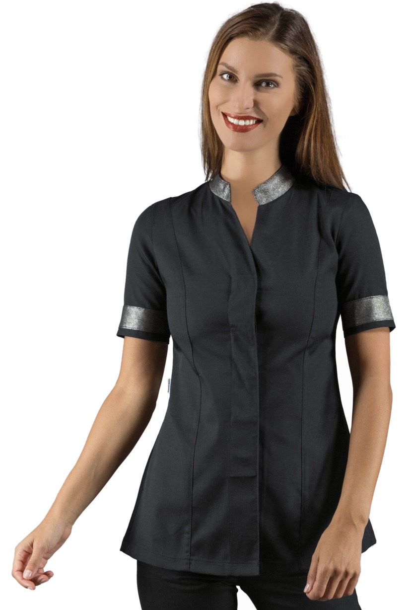 ISACCO CASACCA HIBISCUS BOHEME NERO + LUREX SILVER 100% POLYESTER BOHÉME è una camicia da donna a mezza manica. Per settore estetico e sanitario. Ottima divisa da lavoro per estetiste, massaggiatrici e negozi alimentari. L'indumento è sciancrato con bottoni a pressione. Professione: Assistente alla poltrona, Dentista, Estetista, Fisioterapista, Gastronomo, Maestra d'asilo, Massaggiatore, Panettiere, Parrucchiera, Pasticcere, Onicotecnica.