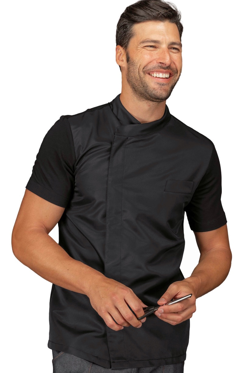 ISACCO GIACCA FRANKLIN M/M JERSEY NERO + SUPERDRY NERO 100% POLYESTER SUPERDRY La Giacca da Cuoco Franklin unisex. Ideale come divisa per uomo e donna da chef in cucina, ristorante o catering. Allacciatura asimmetrica con bottoni a pressione. Con taschino sul petto. Aiuto cuoco, Assistente alla poltrona, Cuoco, Dentista, Fisioterapista, Lavapiatti, Massaggiatore, Pizzaiolo
