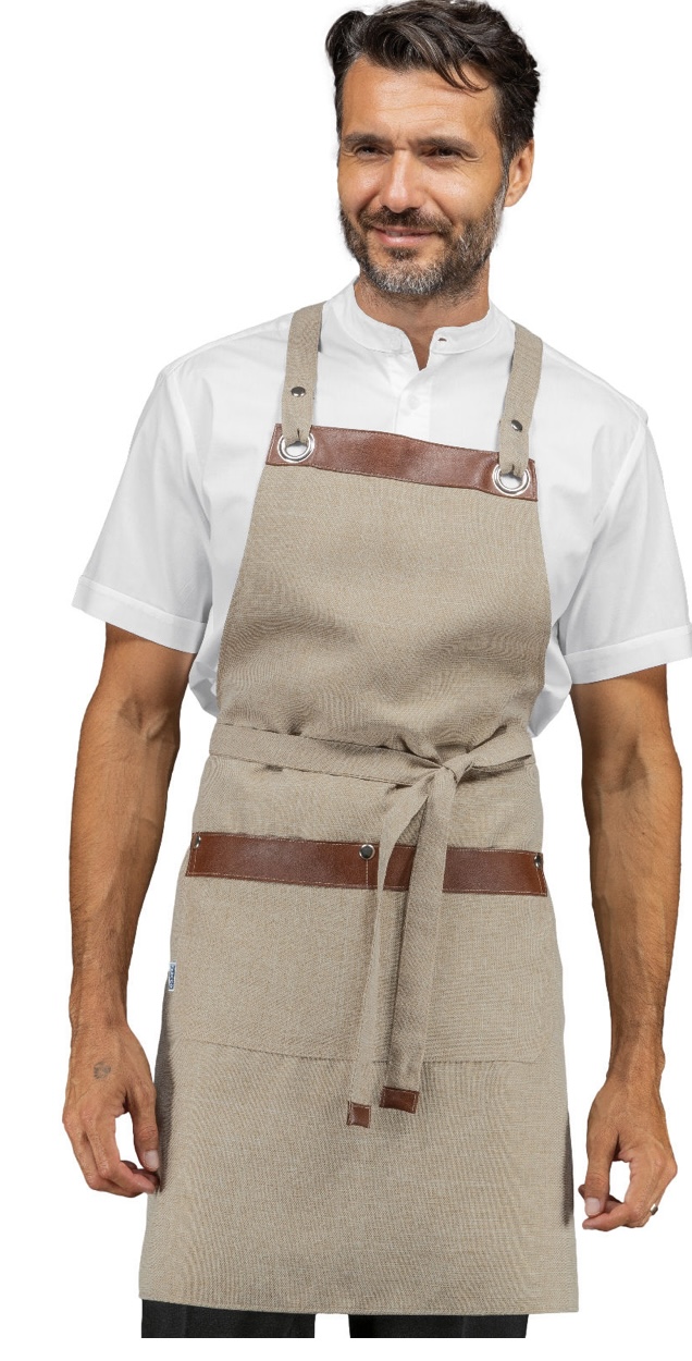 ISACCO GREMBIULE MILFORD NATURAL 100 % POLYESTER , Unisex con ampia tasca centrale in vita e con inserti in pelle. Ideale come divisa da lavoro per cantine, bar, enoteche e bistrot. Con allacciatura dietro al collo che ne permette la regolazione della pettorina. Professione: Aiuto cuoco, Alimentarista, Artigiano, Barbiere, Barista, Cameriere, Cuoco, Fiorista, Fruttivendolo, Gastronomo, Gelataio, Lavapiatti, Macellaio, Magazziniere, Panettiere, Pasticcere, Pizzaiolo, Salumiere, Vivaista.