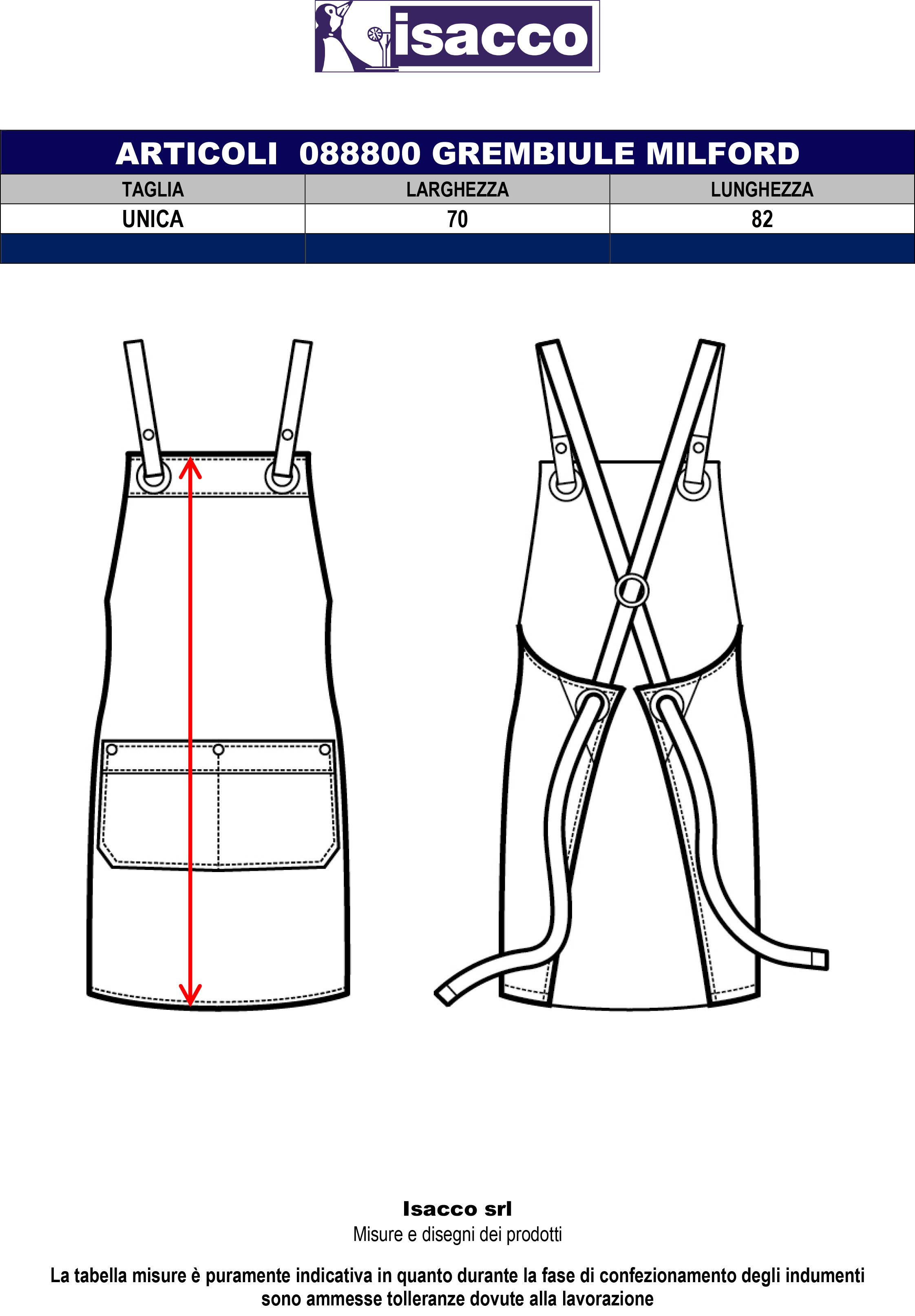 ISACCO GREMBIULE MILFORD NERO 100 % POLYESTER , Unisex con ampia tasca centrale in vita e con inserti in pelle. Ideale come divisa da lavoro per cantine, bar, enoteche e bistrot. Con allacciatura dietro al collo che ne permette la regolazione della pettorina. Professione: Aiuto cuoco, Alimentarista, Artigiano, Barbiere, Barista, Cameriere, Cuoco, Fiorista, Fruttivendolo, Gastronomo, Gelataio, Lavapiatti, Macellaio, Magazziniere, Panettiere, Pasticcere, Pizzaiolo, Salumiere, Vivaista.