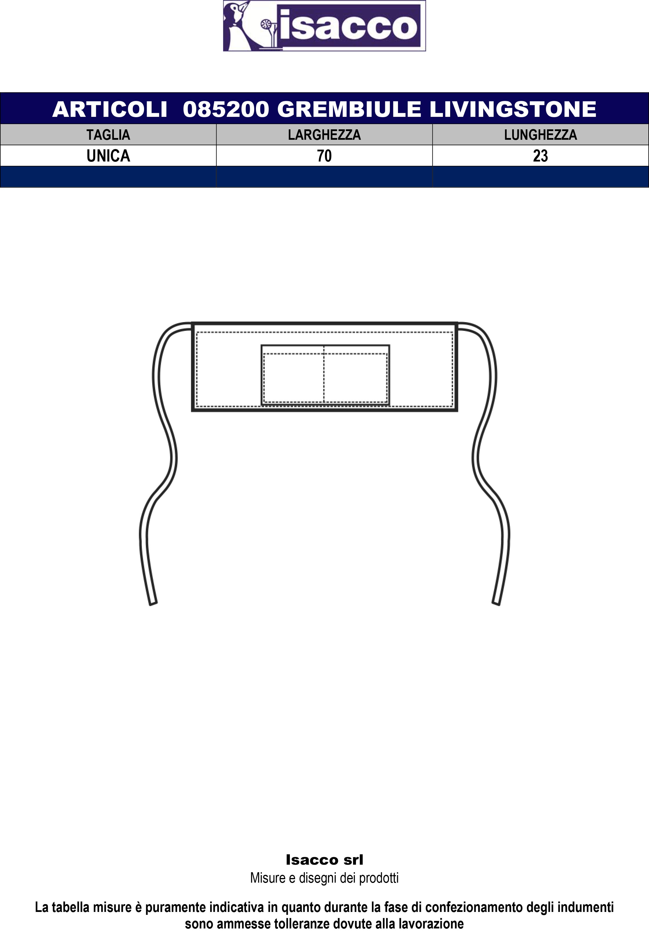 ISACCO LIVINGSTON NERO 65% POLYESTER 35% COTTON 46x30 cm 3 tasche , lacci 100 cm. Ideale per settore alberghiero e parannanza per ristorazione da sala(cameriere). Divisa da lavoro per bar, pub, ristoranti, alimentari, cucine, cuoco e catering. Professione: iuto cuoco, Barista, Cuoco, Gelataio, Lavapiatti, Pizzaiolo