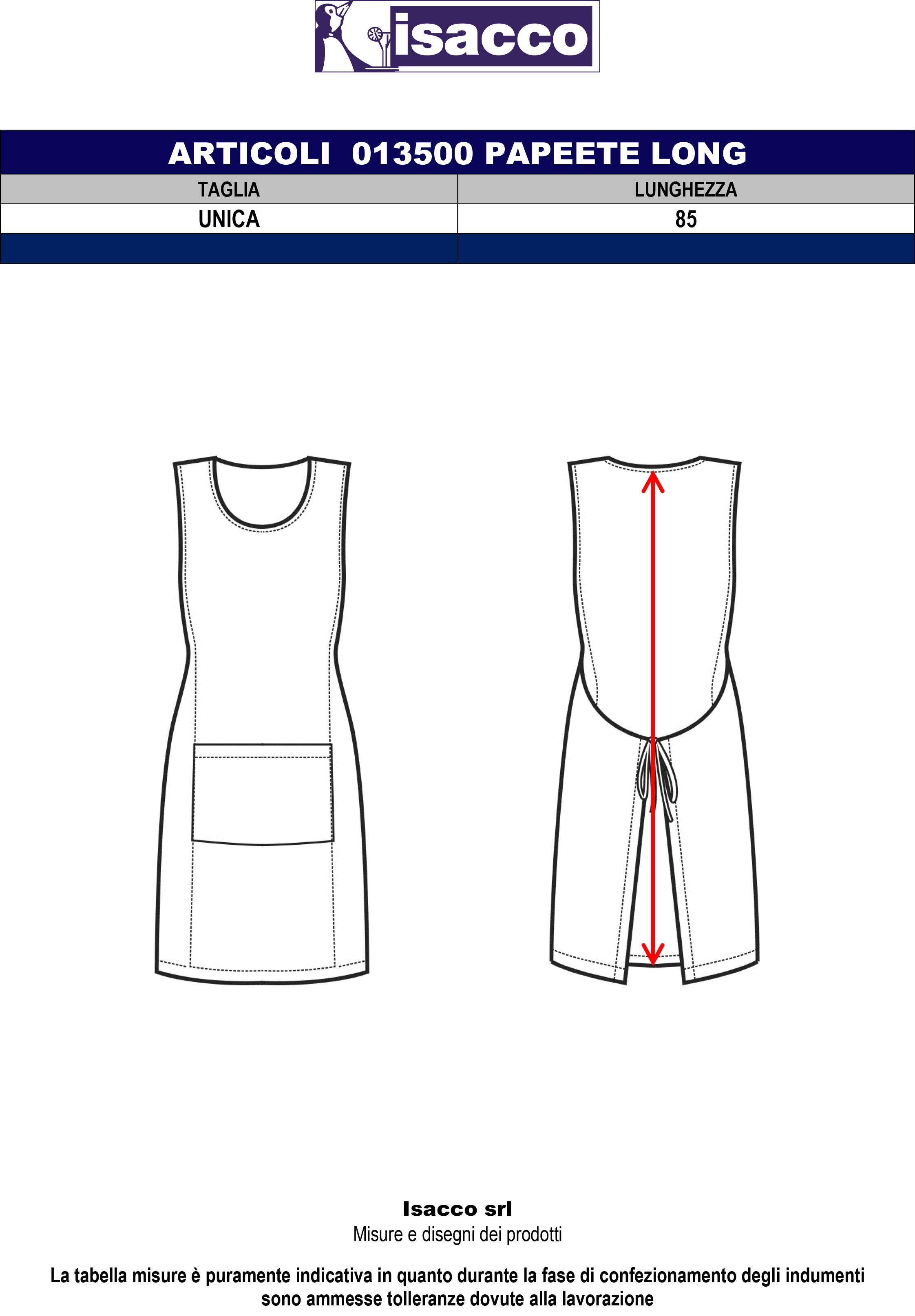 ISACCO PAPEETE LONG NERO 100 % POLYESTER è un grembiule da donna. Ottima per settore alimentare, igiene, pulizia, estetico, sanitario. come divisa da lavoro per aziende di servizi, bar, pub, ristoranti. Taglia unica per vestire tutte le taglie, come poncho con lacci per allacciarlo. Professione: Cameriera ai piani, Colf, Estetista, Fiorista, Fruttivendolo, Gastronomo, Gelataio, Maestra d'asilo, Panettiere, Parrucchiera, Pasticcere, Onicotecnica, Vivaista.