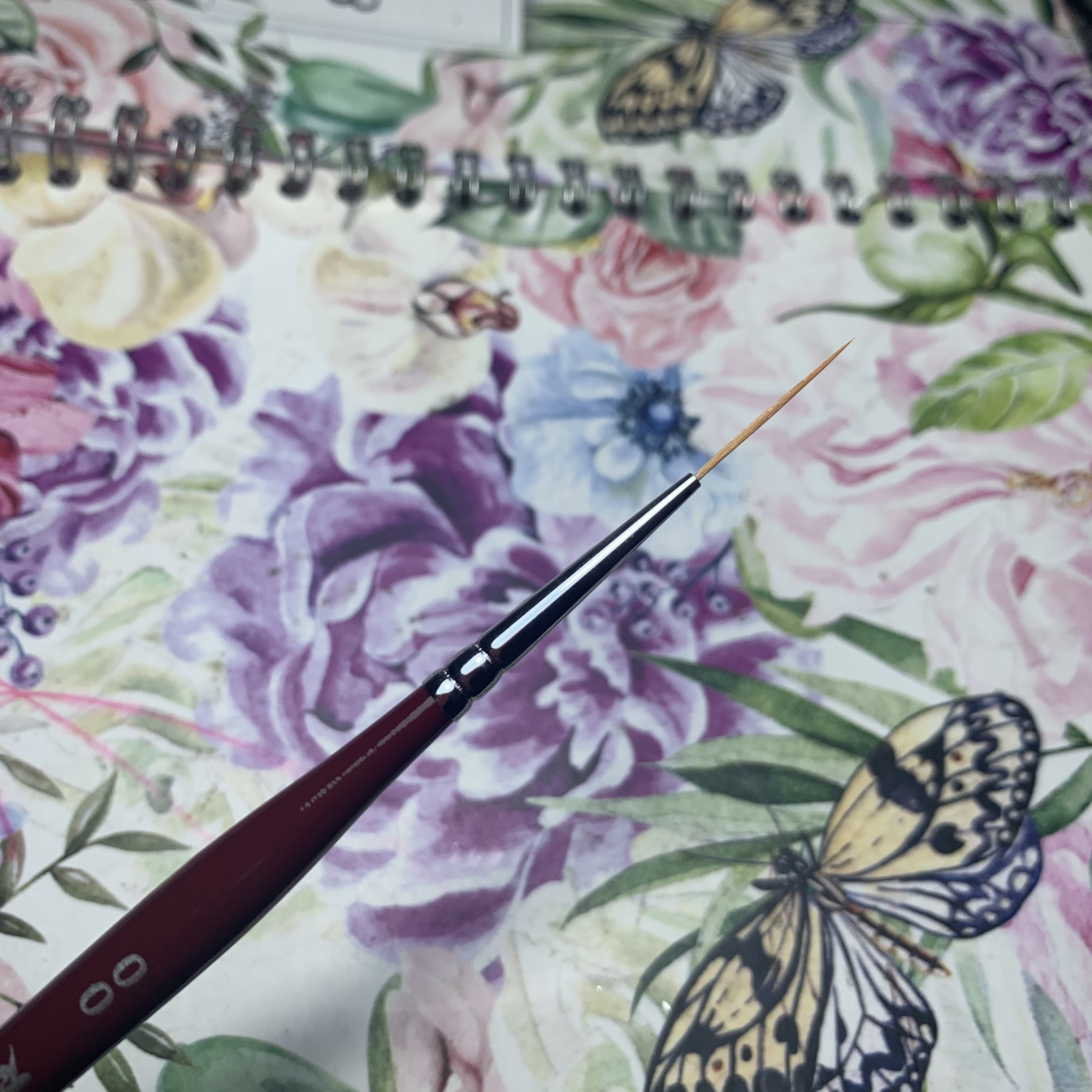 ROUBLOFF Pennello DC43R numero 00, 1 pz. Grazie al suo pelo lungo, il pennello disegna linee con particolare precisione. Lo strumento si occuperà perfettamente della pittura di unghie di qualsiasi complessità: Zhostovo, pittura cinese, acquerello e così via. Con esso, vedrai che la nail art è facile! Il ciuffo del pennello è fatto di pelo sintetico rosso. Questo materiale consente alla vernice di fluire sulla superficie dell'unghia molto più velocemente, il che accelererà notevolmente il tuo lavoro. Le dimensioni dei pennelli #00 e 0 tra cui scegliere ti consentono di creare i motivi più fini in vari disegni floreali e astratti. La clip cromata fissa saldamente il manico in betulla bordeaux chiaro. Questo pennello è utile per disegnare linee lunghe e sottili.