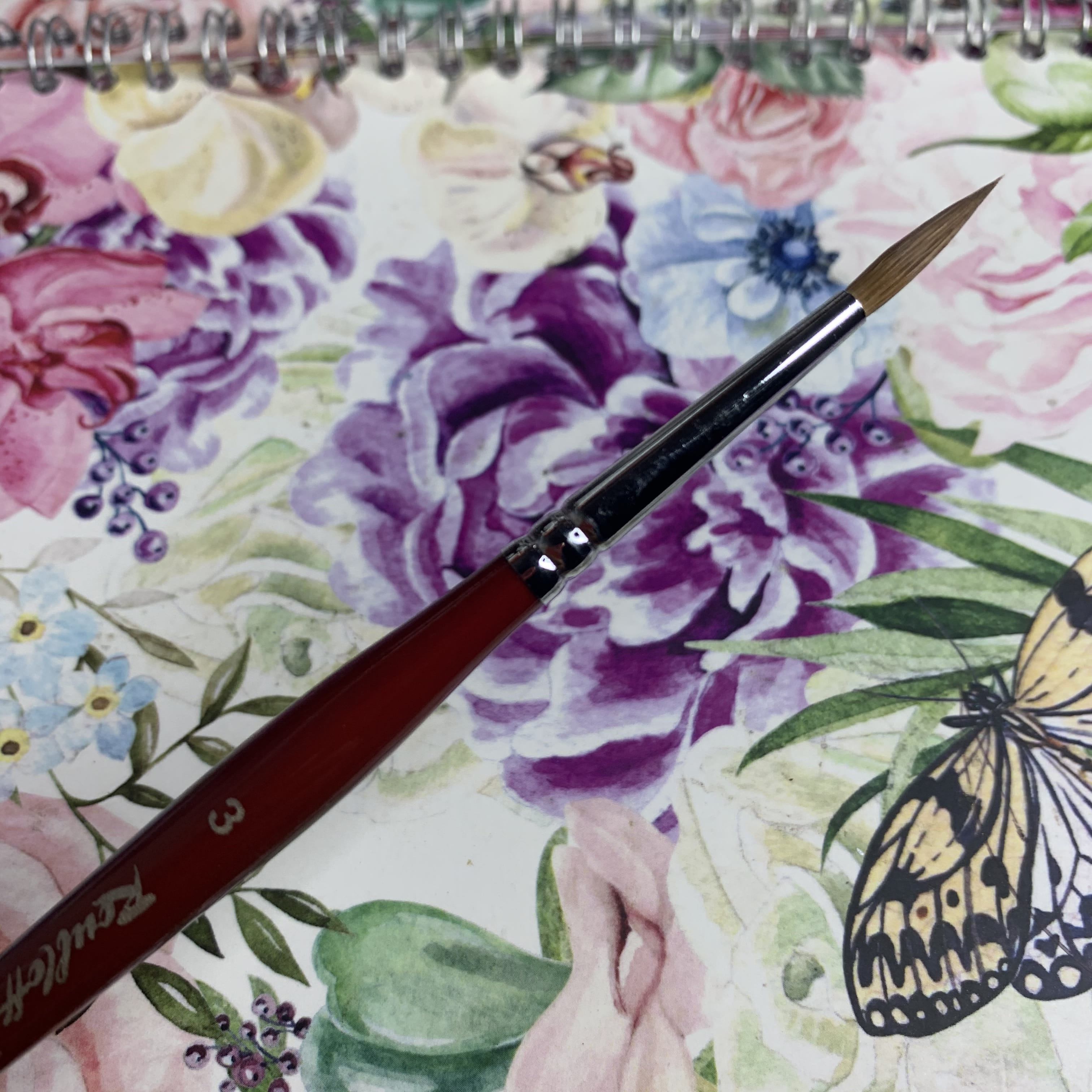 ROUBLOFF Pennello DK13R numero 3, 1 pz. Lo strumento si occuperà perfettamente della pittura di unghie di qualsiasi complessità: Zhostovo, pittura cinese, acquerello e così via. Con esso, vedrai che la nail art è facile! Si consiglia di scegliere il pelo più sottile per la tecnica dell'acquerello. Il ciuffo del pennello è realizzato con capelli kolinsky naturali trattati a mano. Questo materiale trattiene a lungo la vernice, il che consente di utilizzarlo in modo più economico. La dimensione del pennello ha una vasta gamma di scelta e ti consente di creare i motivi più fini in vari disegni floreali e astratti. La clip cromata fissa saldamente il manico in betulla bordeaux chiaro. Questo pennello è utile per disegnare linee lunghe e sottili. Grazie alla lunghezza delle sue setole, il pennello disegna linee con estrema precisione.
