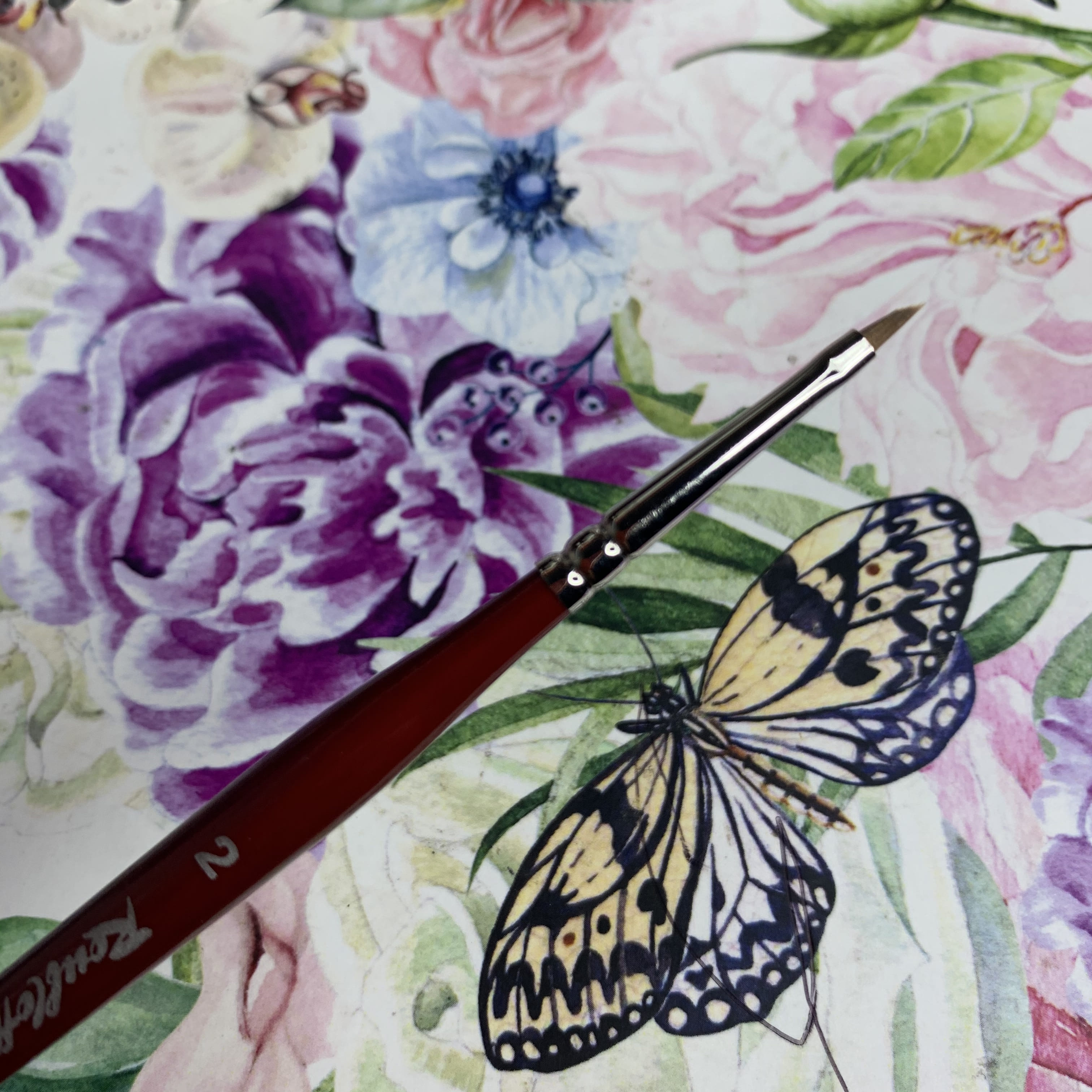 ROUBLOFF Pennello DK63R numero 2, 1 pz. Il materiale del pennello è kolinsky naturale. Tale materiale ha una lunga durata con una cura adeguata: necessita di una pulizia più frequente rispetto alle fibre sintetiche. La larghezza del pelo è di 2,3 e 4 mm: ti consigliamo di prendere diverse opzioni di diversi spessori, che ti permetteranno di lavorare con diverse lunghezze della lamina ungueale e il grado di complessità del motivo. Questo spessore ti consentirà di visualizzare i petali più sottili e i bordi dei fiori. La clip in rame cromato fissa saldamente il manico in betulla bordeaux chiaro. Il pennello per pittura cinese ad angolo piatto Roubloff DK63R è progettato per funzionare in varie tecniche di pittura artistica. Ottimo per lavorare con disegni floreali, come la pittura cinese. Lo strumento gestirà facilmente anche lo smalto gel, se lo usi per far risaltare una linea del sorriso perfettamente uniforme in una french manicure.