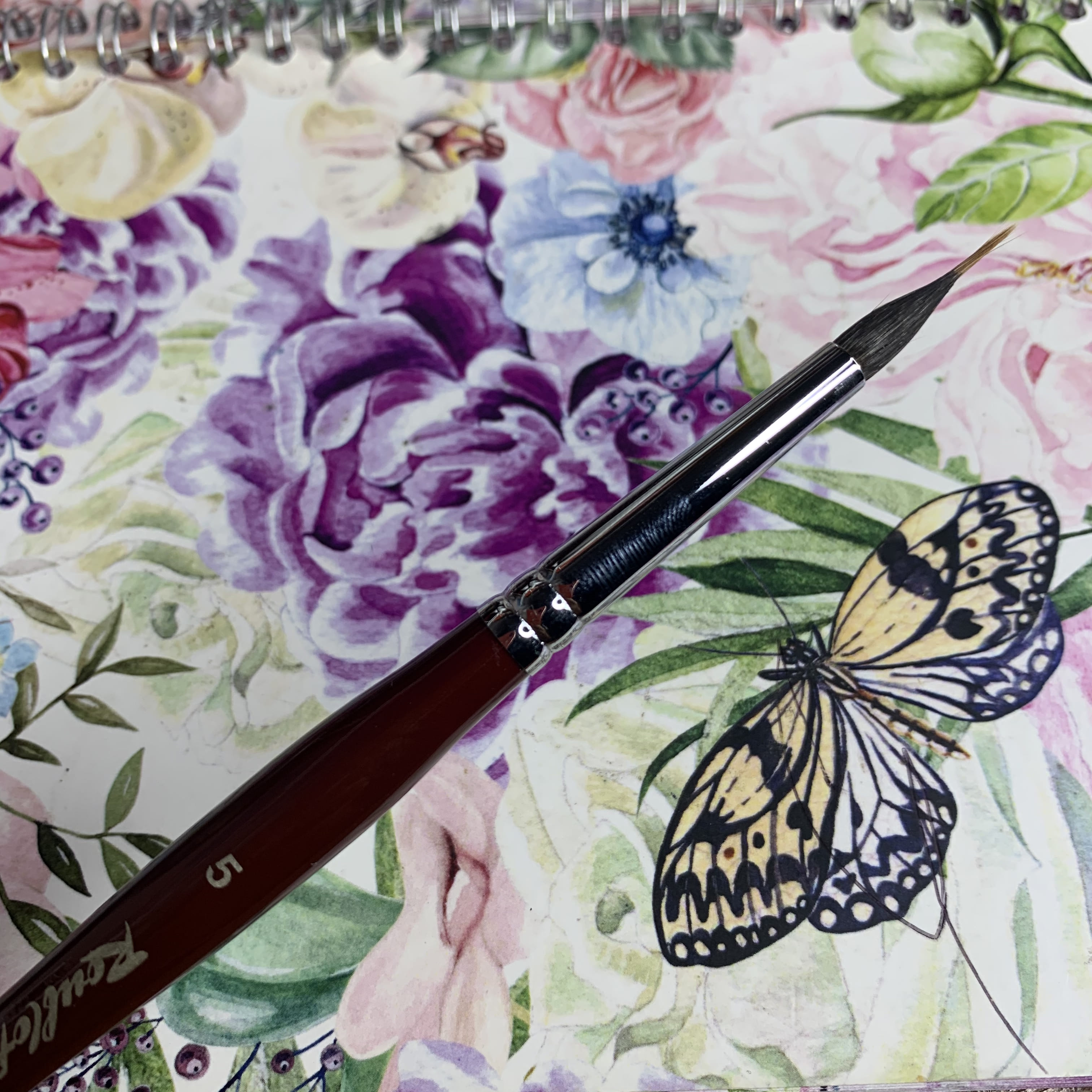 ROUBLOFF Pennello DKG3R numero 5, 1 pz. La setola del fascio dei pennelli è speciale: è un pelo naturale di kolinsky e scoiattolo. Grazie alla fusione di due materiali naturali, la resistenza all'usura dell'utensile aumenta. La parte superiore del pennello ha la forma di uno striper: è progettata per disegnare piccoli dettagli. La parte inferiore del pelo dello scoiattolo raccoglie e trattiene la vernice. Ciò ti consente di rendere il tuo lavoro con il materiale più veloce ed economico. La clip in rame cromato fissa saldamente il manico in betulla bordeaux chiaro. Il pennello rotondo per nail art Roubloff DKG3R con una forma grafica è ideale per la pittura ad acquerello.