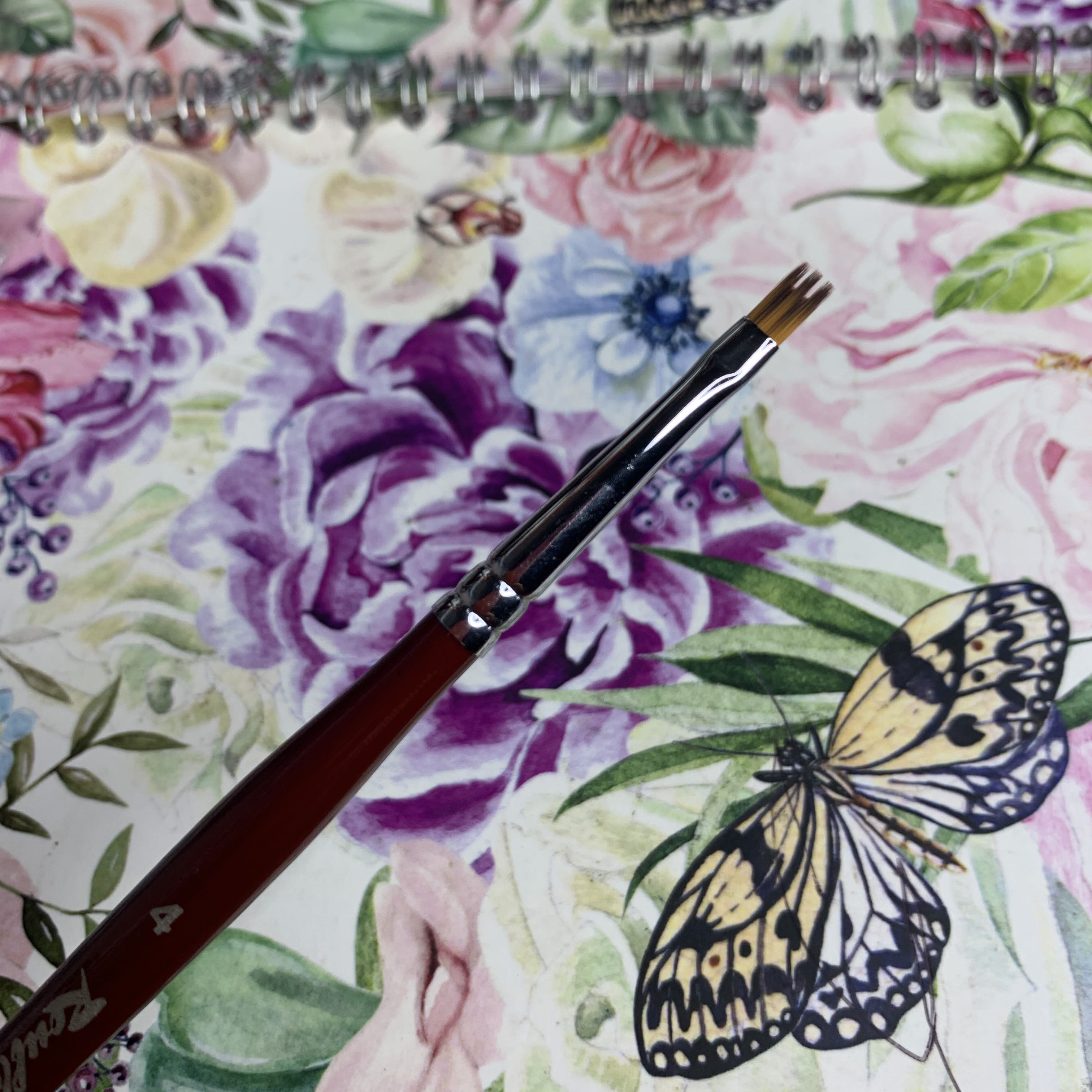ROUBLOFF Pennello DSF3R numero 4, 1 pz. Le setole sintetiche del pennello, imitando i peli kolinsky, conferiscono elasticità allo strumento. Il prodotto può funzionare contemporaneamente con 2-3 tonalità e, di conseguenza, otterrai una geometria o un motivo floreale insoliti. Larghezza del ciuffo del pennello 4,5,7 mm tra cui scegliere - ti consigliamo di acquistare diversi pennelli in base alle dimensioni della lamina ungueale della cliente o alla dimensione della tip. Un pennello per dipingere le unghie può funzionare in disegni astratti. Il pennello ha la forma di un tridente o di un kilt, per questo è nato il nome “tartan”. La forma figurata del pennello fa un ottimo lavoro con la decorazione volumetrica e alcuni tipi di pittura artistica, come Zhostovo
