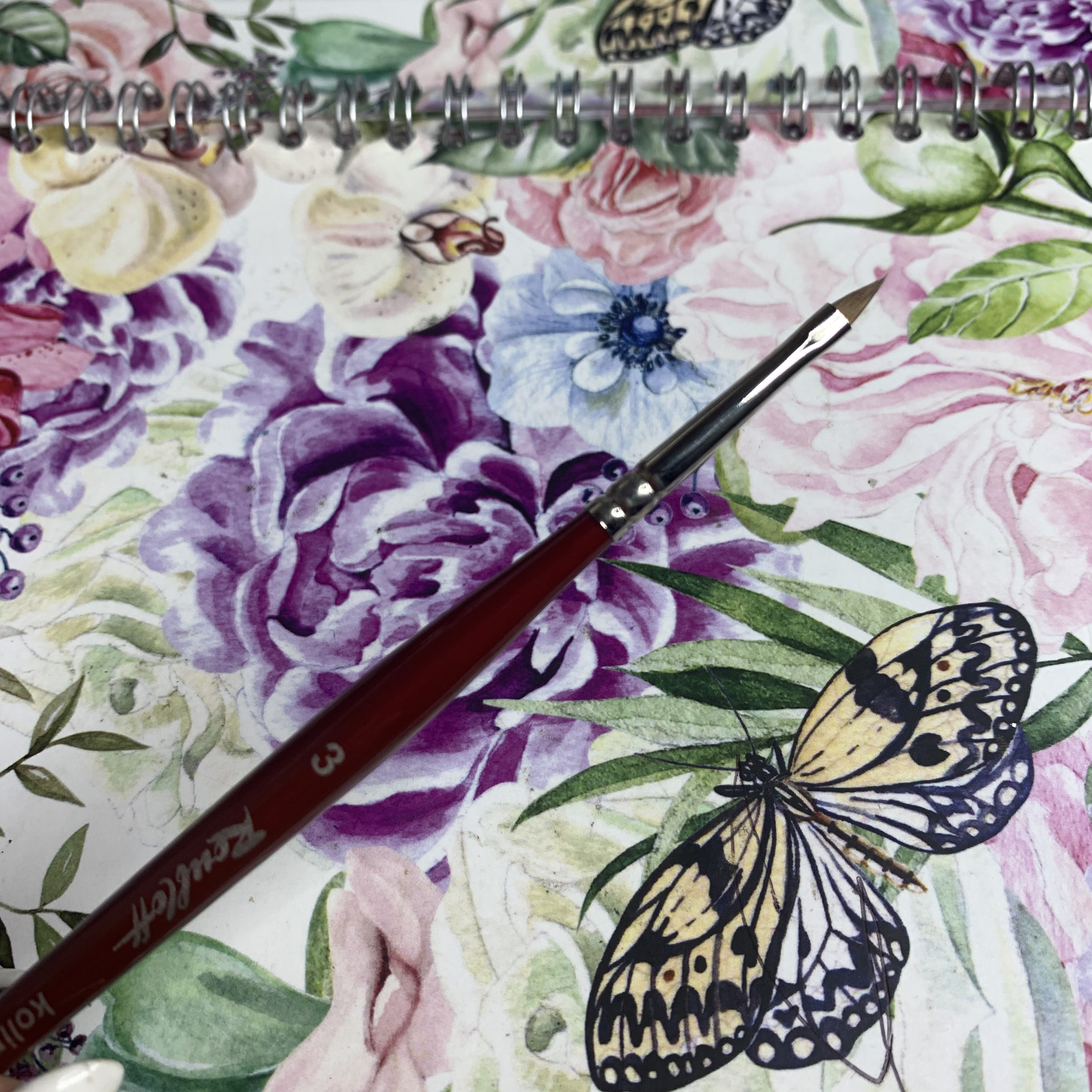 ROUBLOFF Pennello GK93R numero 3, 1 pz. Il pennello è adatto per la floristica nei design in gel, sia per professionisti che per principianti. Lo strumento consente di visualizzare disegni abbastanza accurati di petali e foglie. Il pennello è smussato su entrambi i lati, il che lo rende indispensabile per disegnare motivi floreali. Il materiale del pennello per lo smalto gel per manicure sono i peli kolinsky naturali. Questo pennello elastico trattiene bene il gel quando è disteso sulla lamina ungueale. Lo spessore del fascio di pelo n. 2,3,4,5 tra cui scegliere, ti consigliamo di prendere diverse opzioni di diversi spessori, che ti permetteranno di lavorare con diverse lunghezze della lamina ungueale e il grado di complessità del motivo.