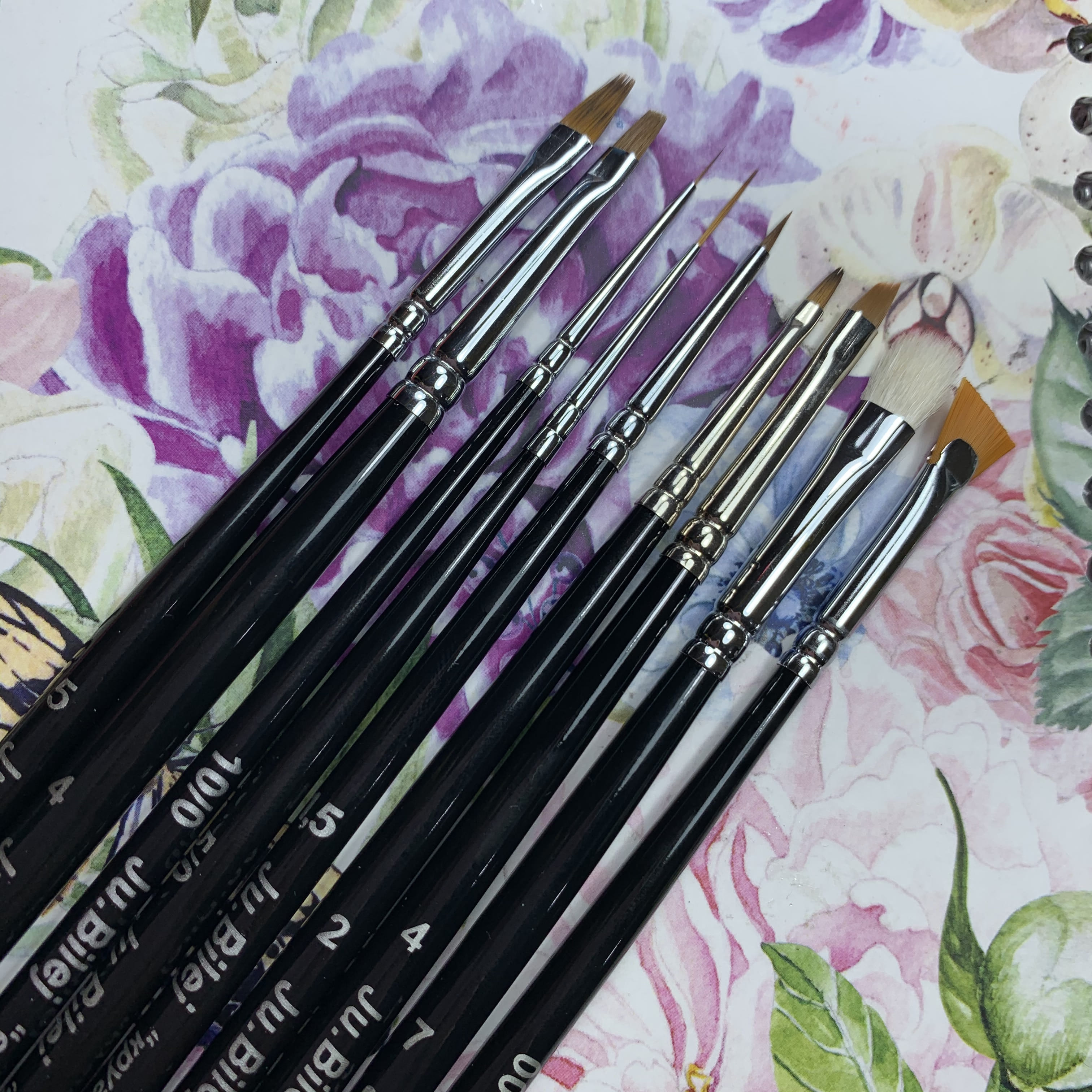 ROUBLOFF Kit dei pennelli Juliya Biley №7 Gel designer, 1 pz. Questo kit è indispensabile per lavorare con gel colorati e smalti gel. Lo consigliamo ai professionisti del settore delle unghie che già conoscono tecniche di progettazione come: monogrammi, gradiente, pittura Zhostovo, floristica, giacca. I pennelli del kit si adatteranno perfettamente a sottili dipinti e disegni. La presenza di una spazzola a ventaglio ti consentirà di lavorare con materiale in eccesso e tecnica di sfregamento.Composizione del set:"Capra" n. 7"Texture" №00"Gradiente" №5"Angolo" №4"Lingua" n. 2"Monogramma" №10/0"Striper" №5/0"Piatto" n. 4"Rotondo" n. 1.5