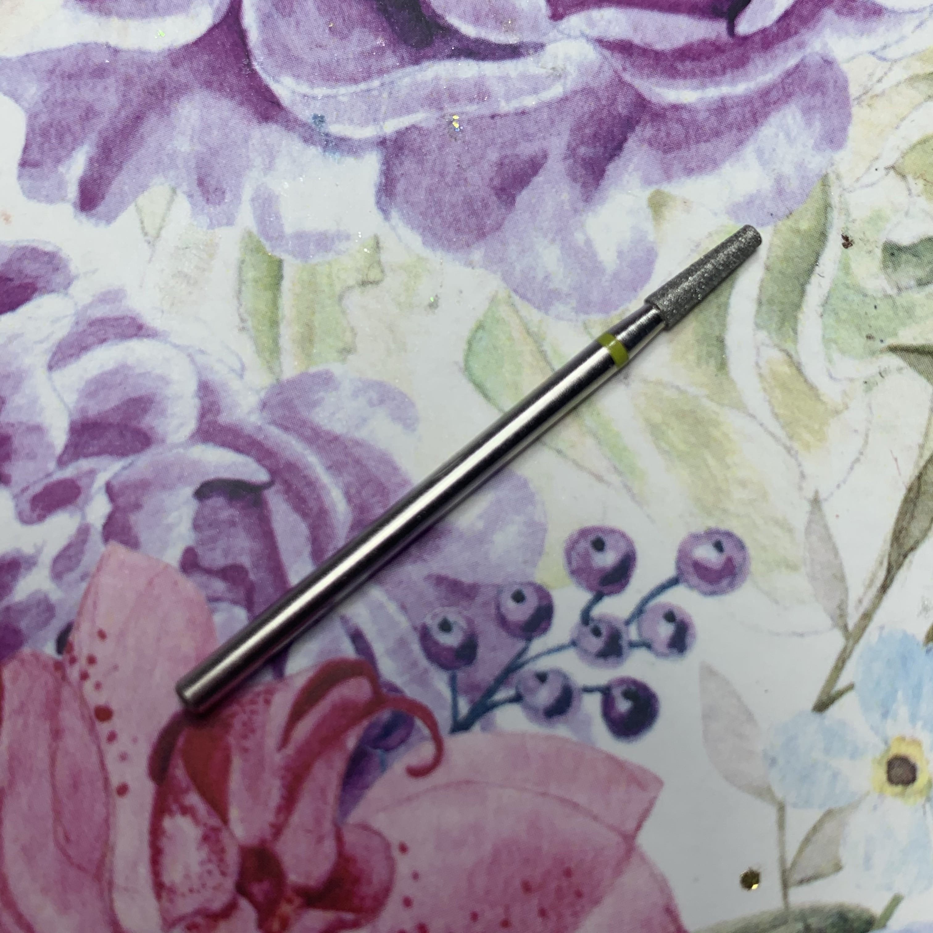 MATRIOSHKANAIL Punta diamantata, trapezio, fascia gialla, Ø23, 1 pz .Punta si usa per alzare e rimuovere le cuticole, per i valli laterali, per rimuovere i sollevamenti durante il refill. Si puo’ sterilizzare e disinfettare.