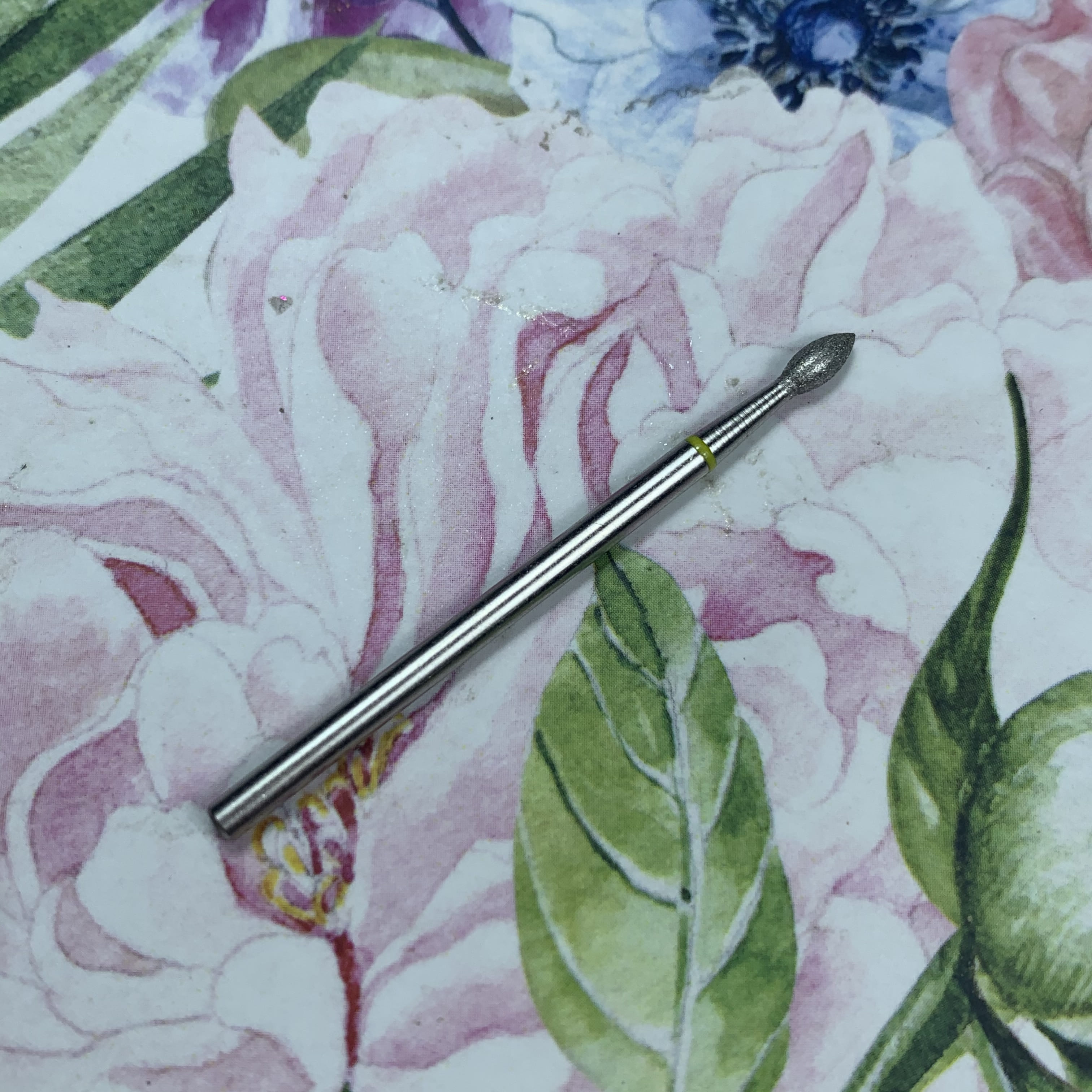 MATRIOSHKANAIL Punta diamantata, pesciolino, fascia gialla, Ø23, 1 pz .Punta si usa per alzare e rimuovere le cuticole, per i valli laterali, per rimuovere i sollevamenti durante il refill. Si puo’ sterilizzare e disinfettare.