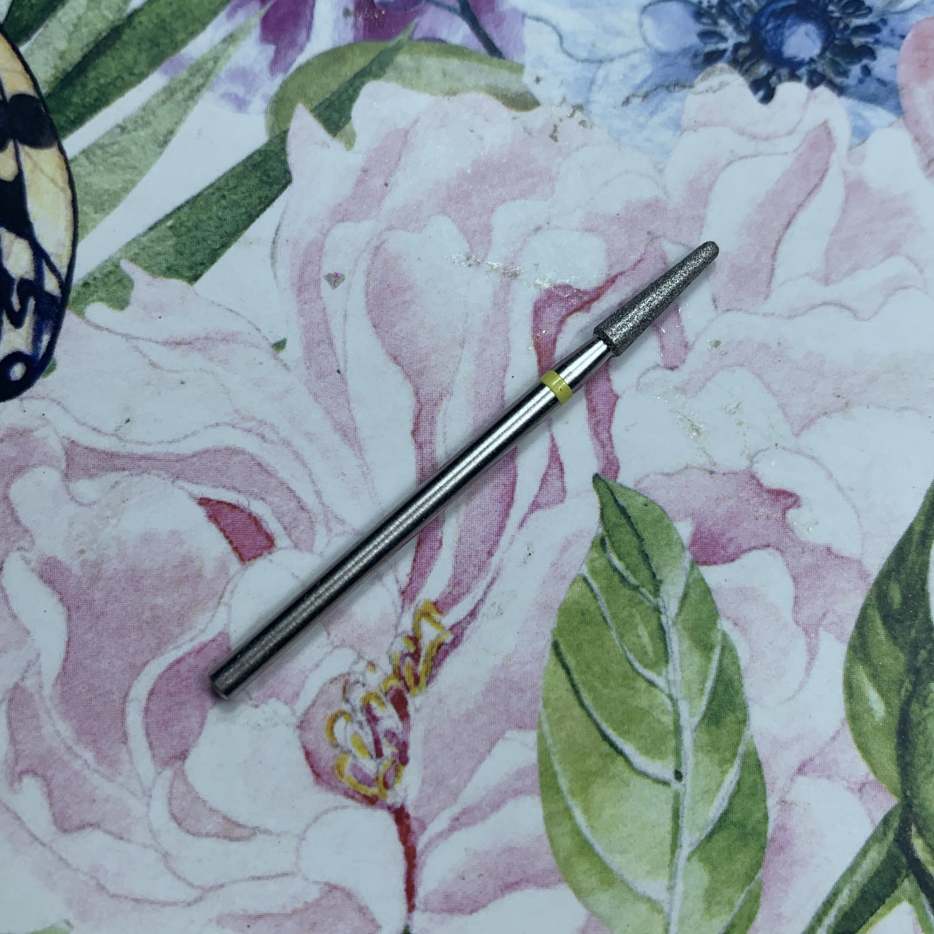 MATRIOSHKANAIL Punta diamantata, trapezio stondato, fascia gialla Ø25, 1 pz .Punta si usa per alzare e rimuovere le cuticole, per i valli laterali, per rimuovere i sollevamenti durante il refill. Si puo’ sterilizzare e disinfettare.