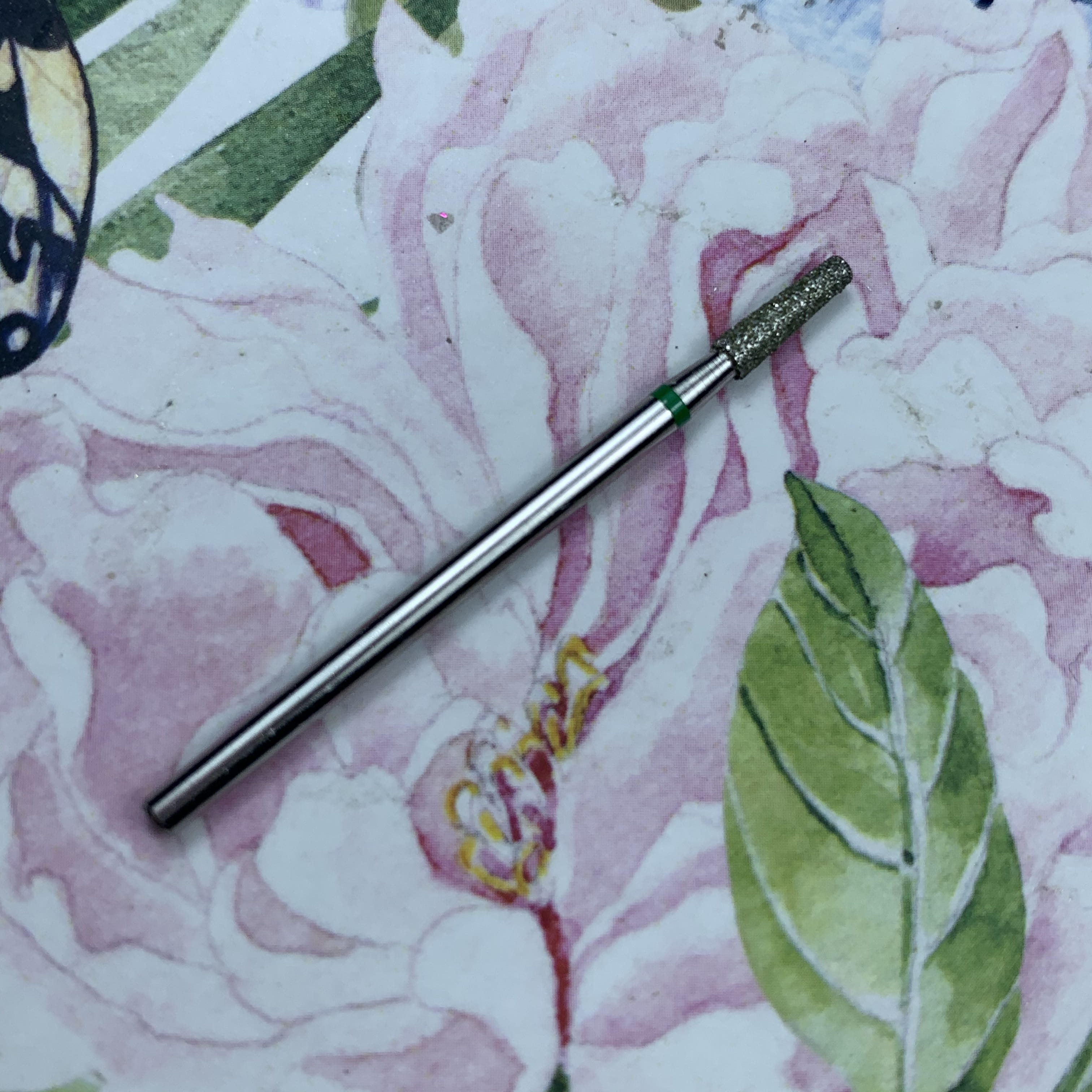 MATRIOSHKANAIL Punta diamantata, trapezio, fascia verde Ø25, 1 pz .Punta si usa per alzare e rimuovere le cuticole, per i valli laterali, per rimuovere i sollevamenti durante il refill. Si puo’ sterilizzare e disinfettare.