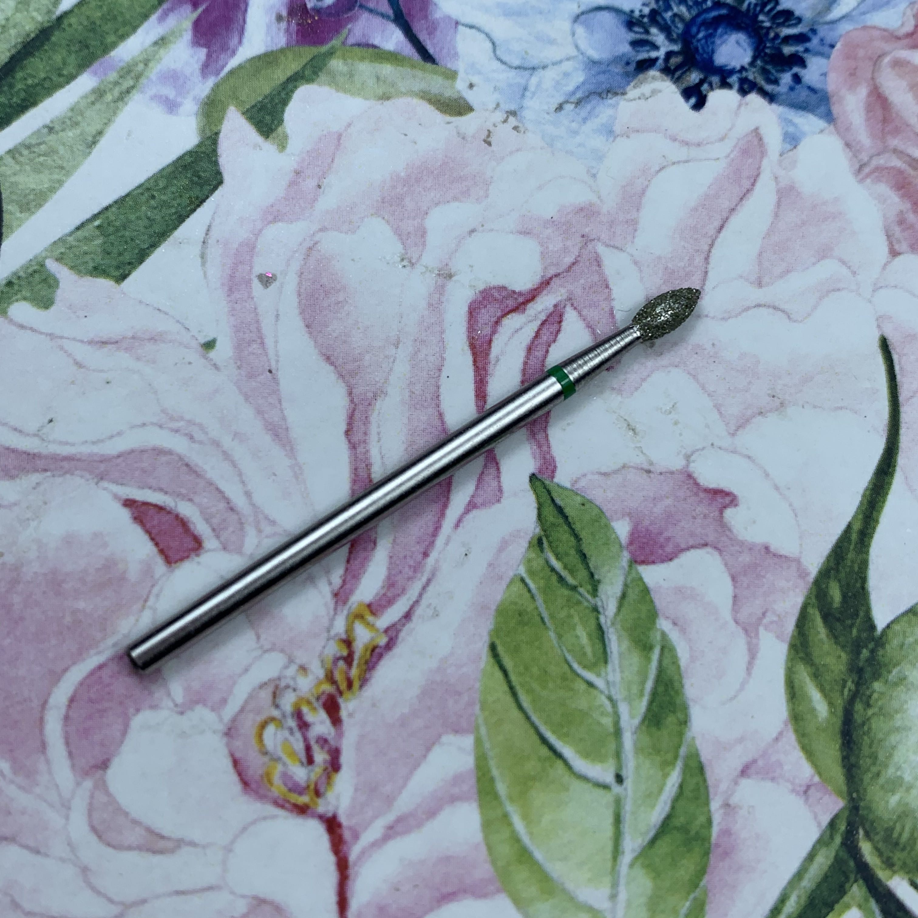 MATRIOSHKANAIL Punta diamantata, pesciolino, fascia verde Ø25, 1 pz .Punta si usa per alzare e rimuovere le cuticole, per i valli laterali, per rimuovere i sollevamenti durante il refill. Si puo’ sterilizzare e disinfettare.