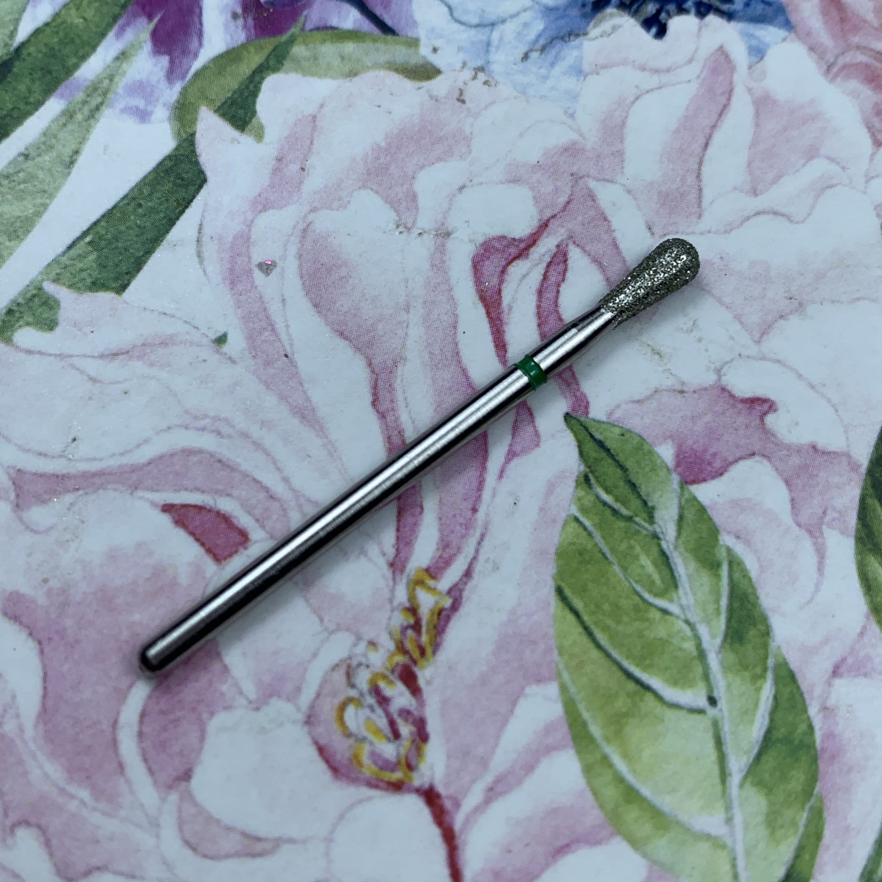 MATRIOSHKANAIL Punta diamantata, pera, fascia verde Ø33, 1 pz .Punta si usa per alzare e rimuovere le cuticole, per i valli laterali, per rimuovere i sollevamenti durante il refill. Si puo’ sterilizzare e disinfettare.