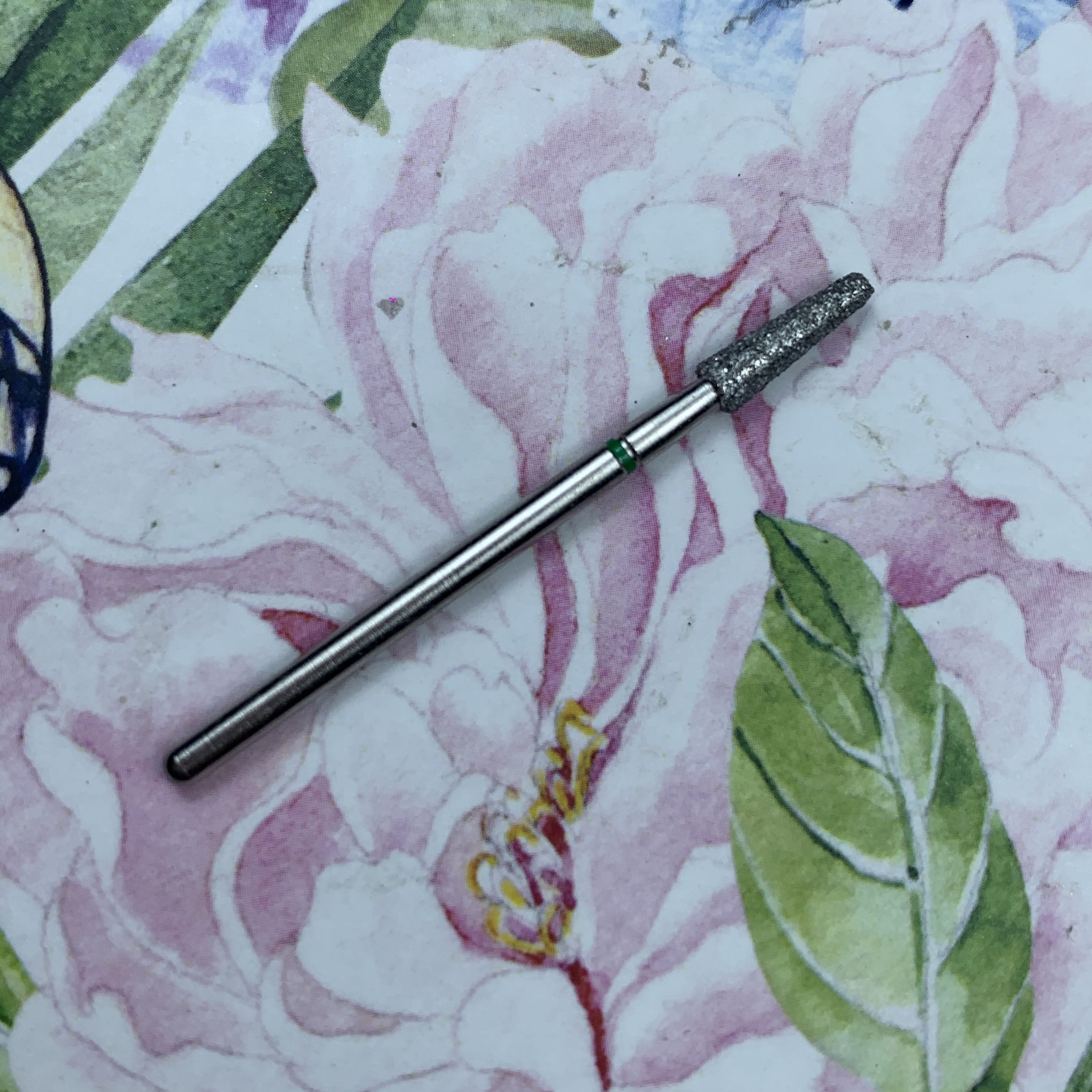 MATRIOSHKANAIL Punta diamantata, trapezio stondato, fascia verde Ø33, 1 pz .Punta si usa per alzare e rimuovere le cuticole, per i valli laterali, per rimuovere i sollevamenti durante il refill. Si puo’ sterilizzare e disinfettare.