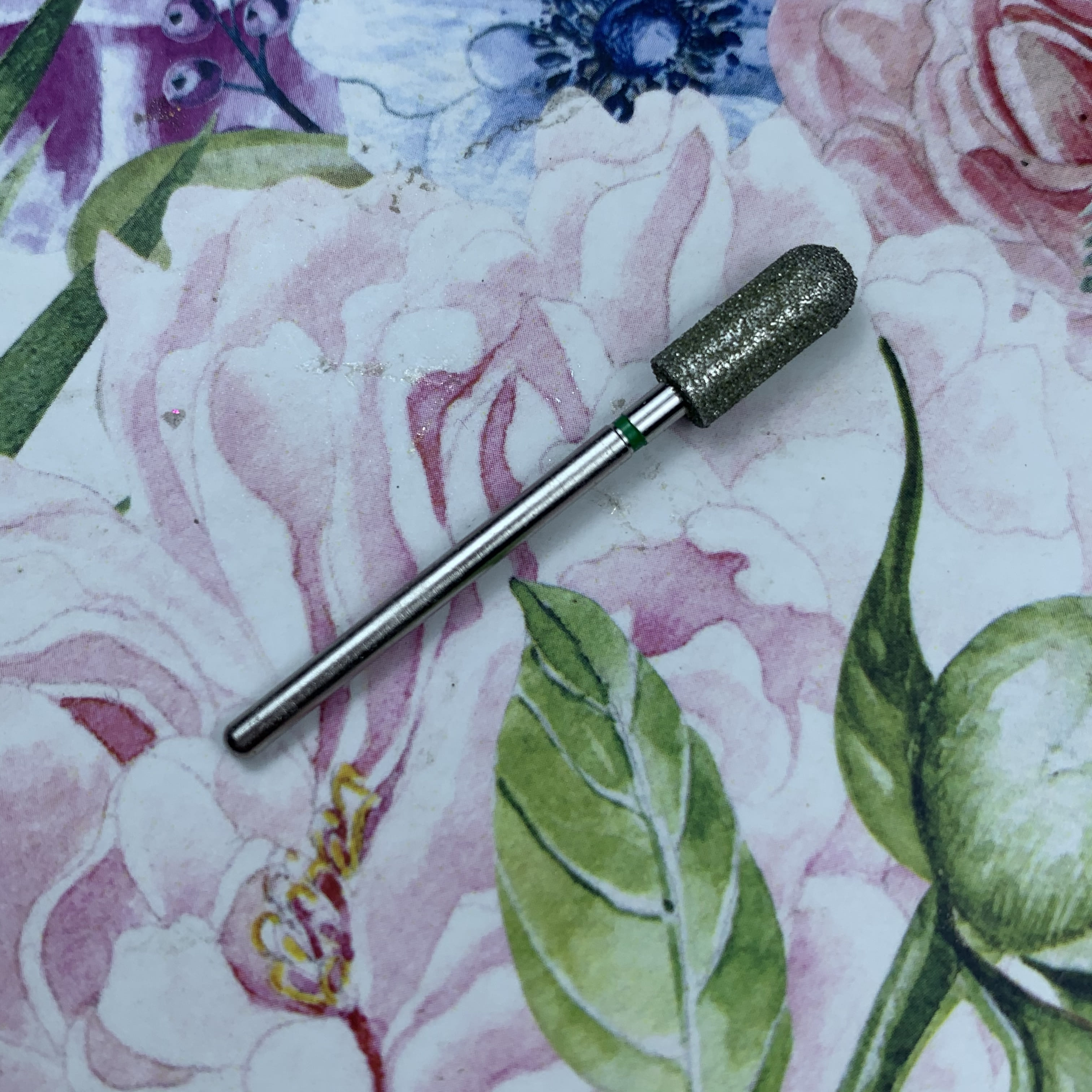 MATRIOSHKANAIL Punta diamantata, cilindro stondato, fascia verde Ø50, 1 pz .Punta si usa per alzare e rimuovere le cuticole, per i valli laterali, per rimuovere i sollevamenti durante il refill. Si puo’ sterilizzare e disinfettare.