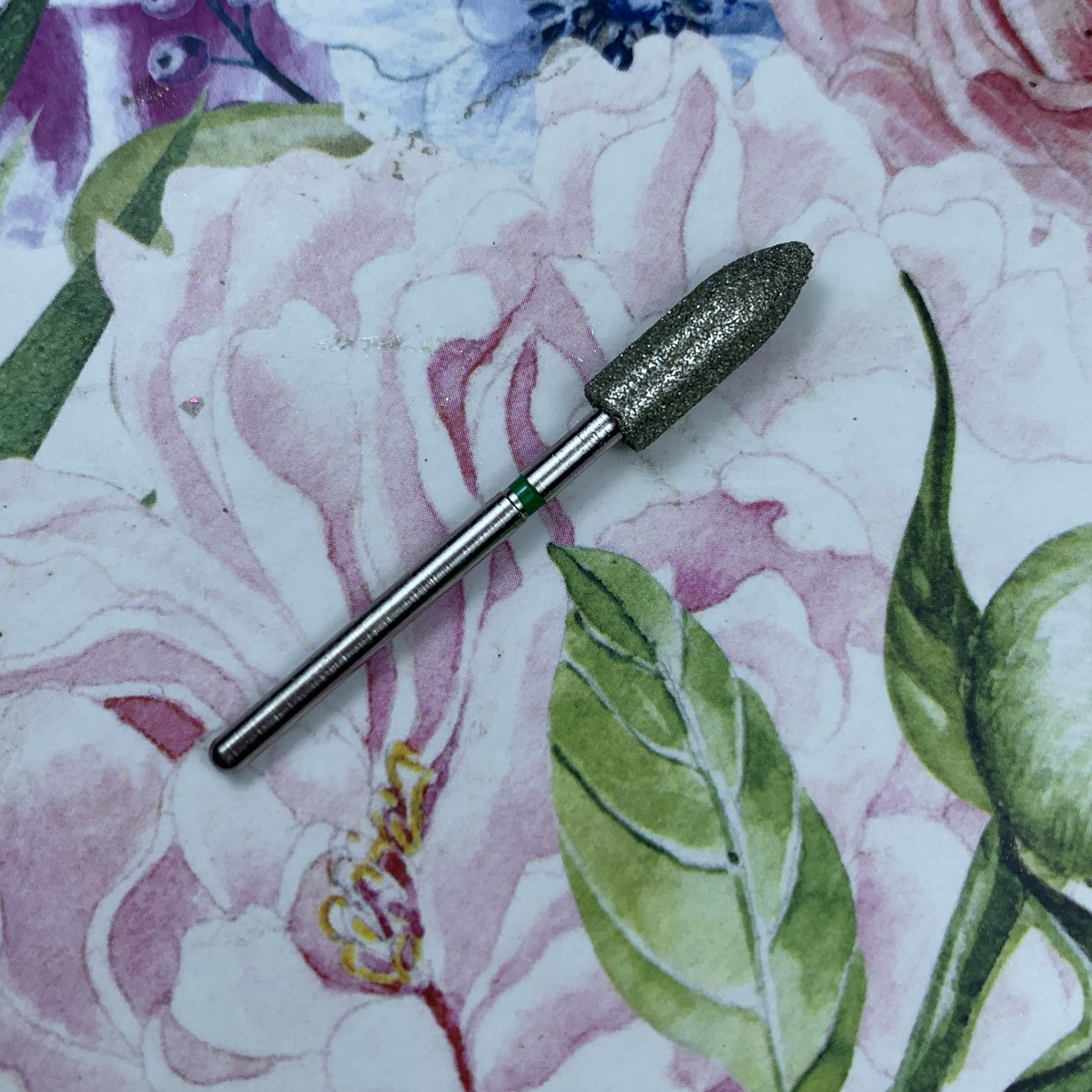 MATRIOSHKANAIL Punta diamantata, siluro, fascia verde Ø50, 1 pz .Punta si usa per alzare e rimuovere le cuticole, per i valli laterali, per rimuovere i sollevamenti durante il refill. Si puo’ sterilizzare e disinfettare.