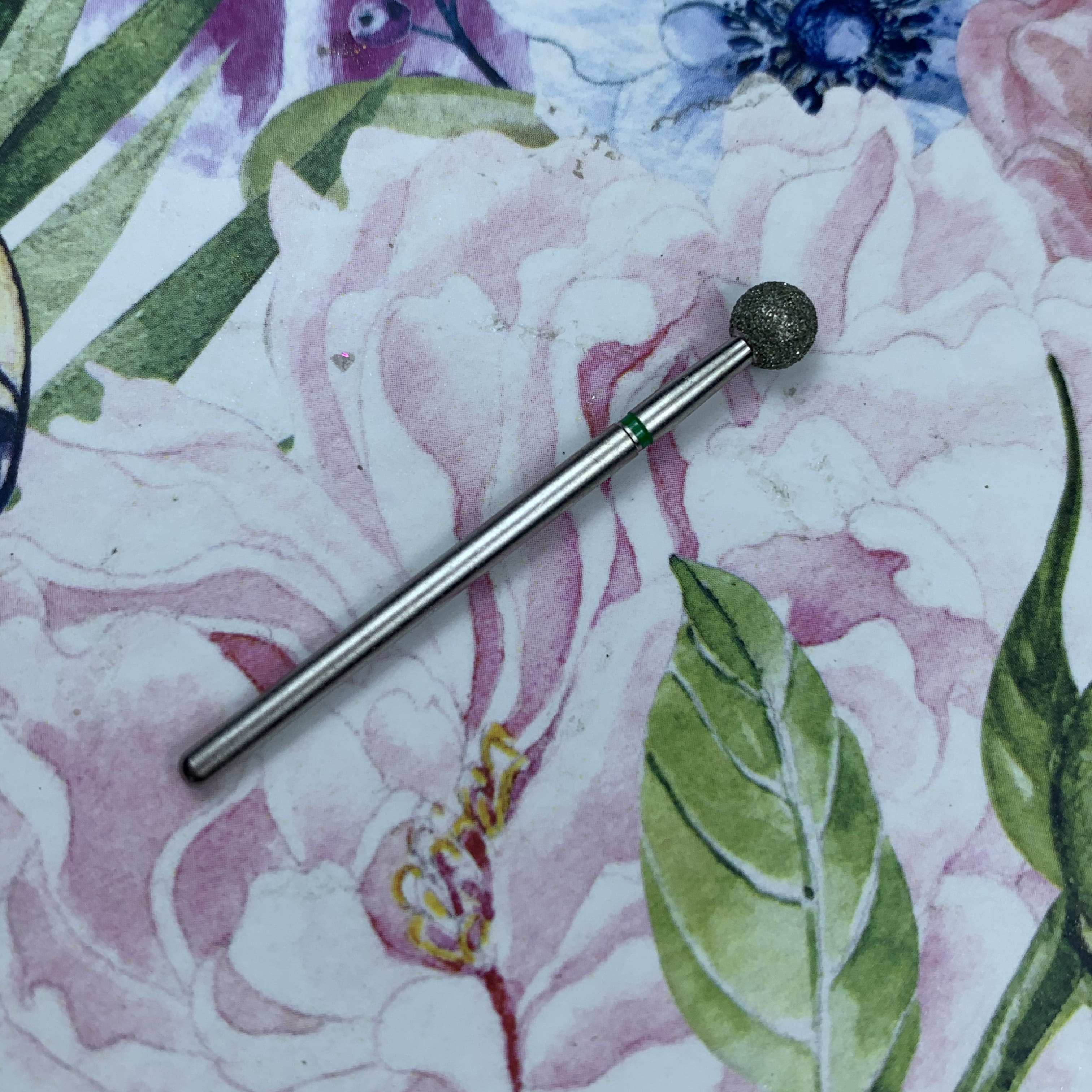 MATRIOSHKANAIL Punta diamantata, pallina, fascia verde Ø50, 1 pz .Punta si usa per alzare e rimuovere le cuticole, per i valli laterali, per rimuovere i sollevamenti durante il refill. Si puo’ sterilizzare e disinfettare.