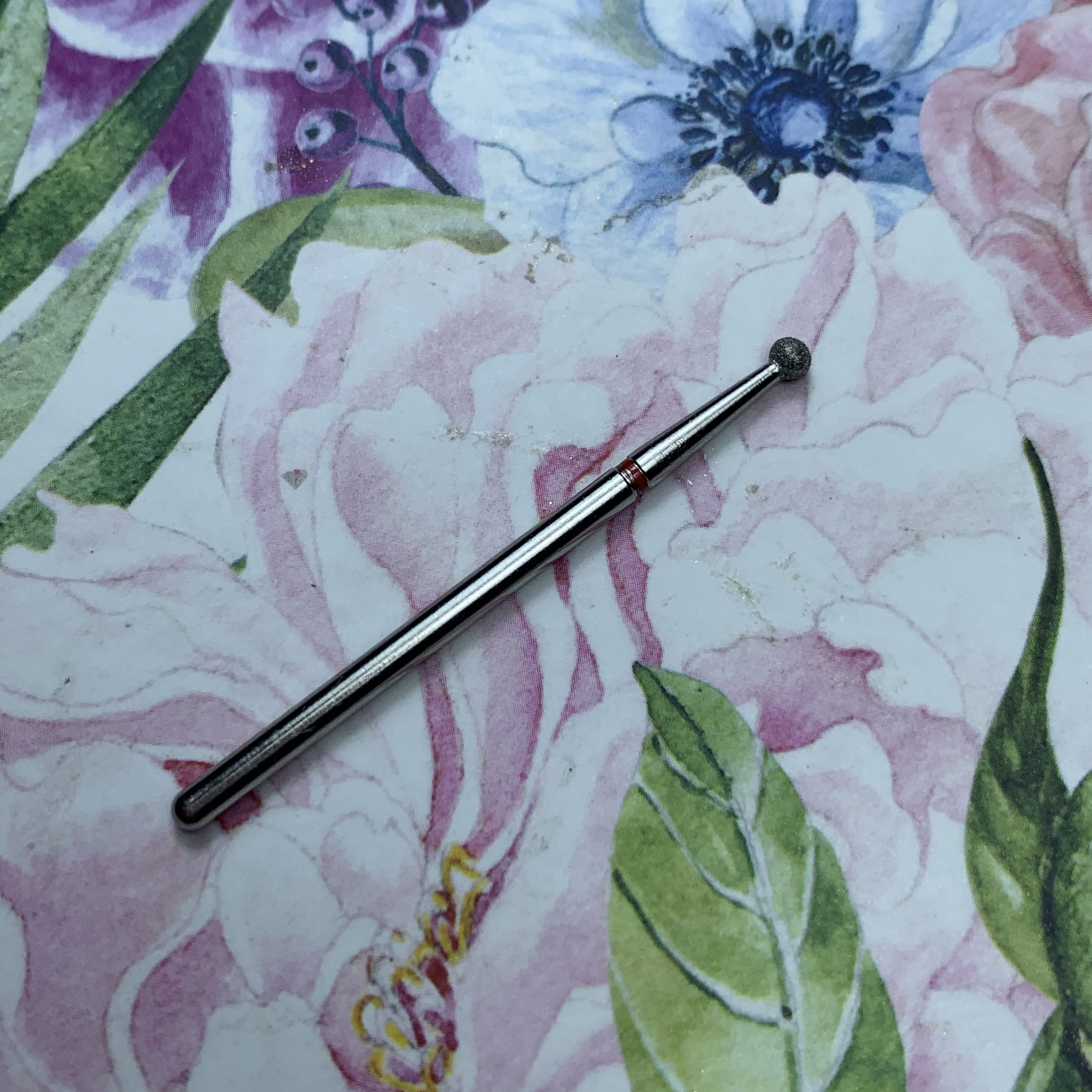 MATRIOSHKANAIL Punta diamantata, pallina, fascia rossa Ø25, 1 pz .Punta si usa per alzare e rimuovere le cuticole, per i valli laterali, per rimuovere i sollevamenti durante il refill. Si puo’ sterilizzare e disinfettare.