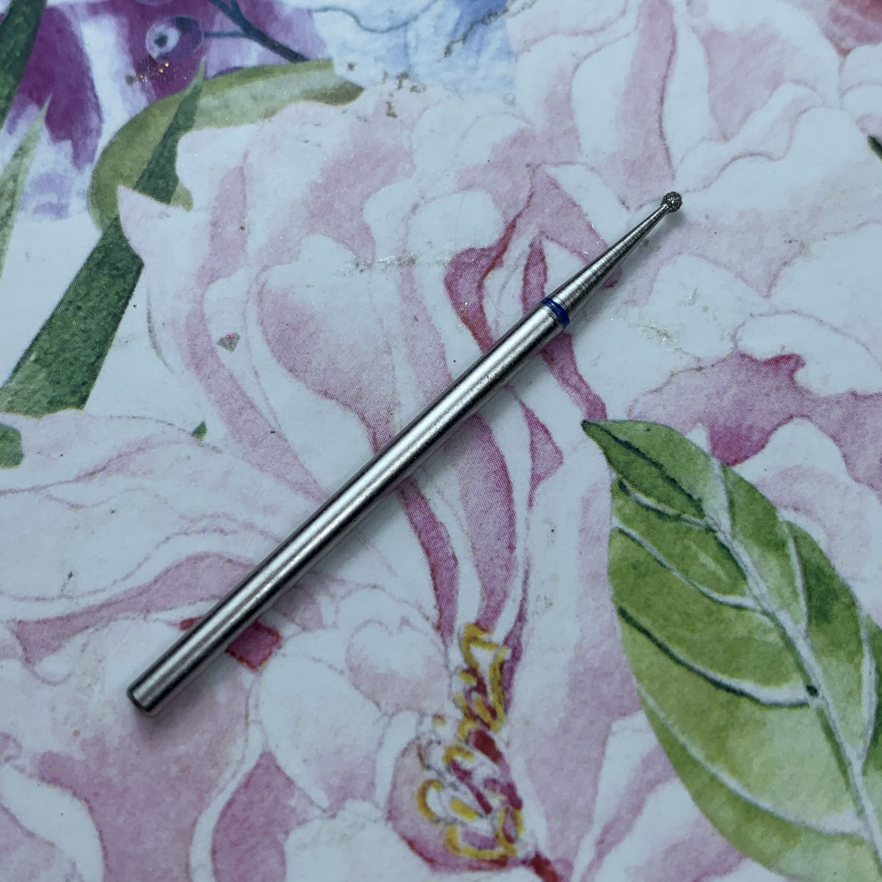 MATRIOSHKANAIL Punta diamantata, pallina, fascia blu Ø12, 1 pz .Punta si usa per alzare e rimuovere le cuticole, per i valli laterali, per rimuovere i sollevamenti durante il refill. Si puo’ sterilizzare e disinfettare.