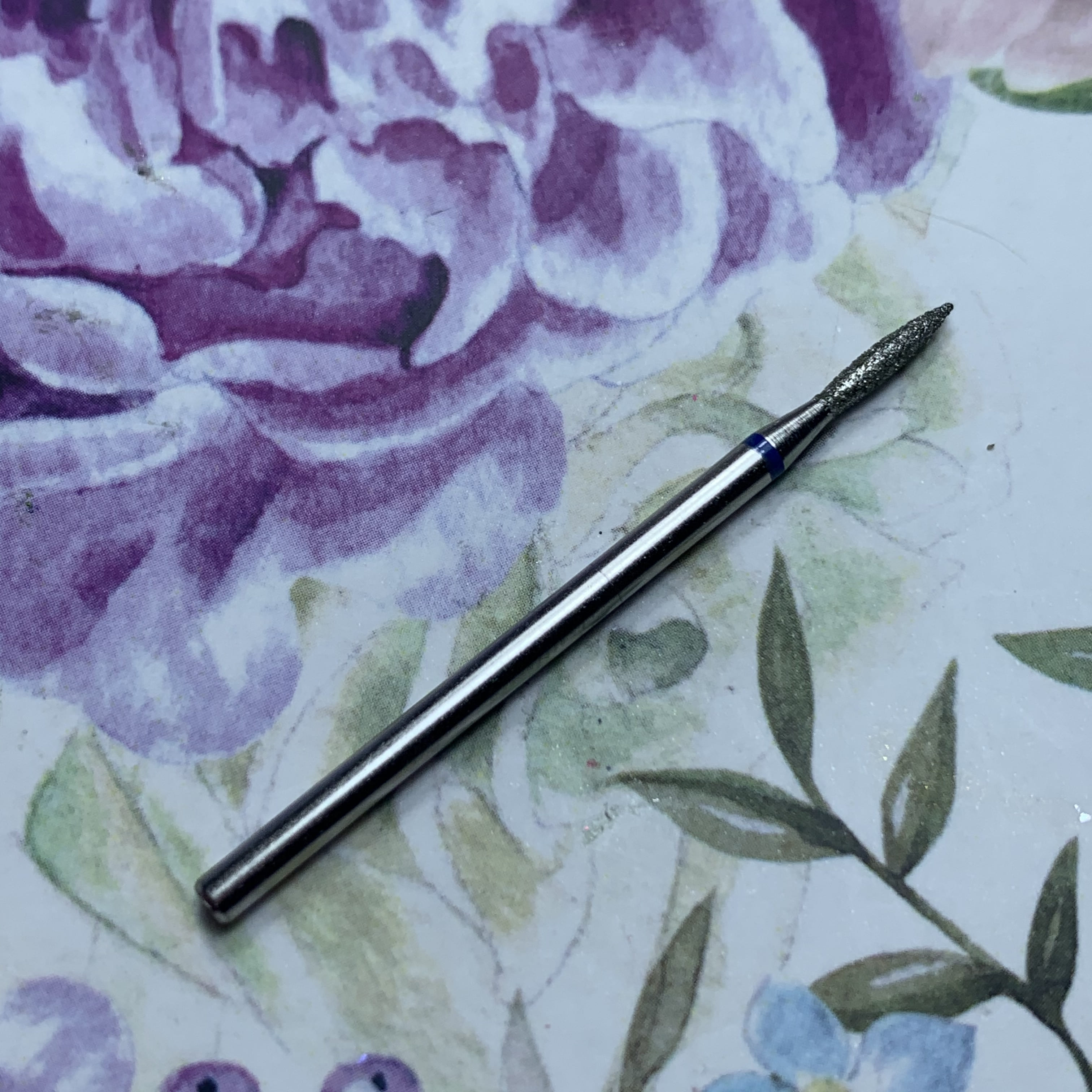 MATRIOSHKANAIL Punta diamantata, fiamma, fascia blu Ø16, 1 pz .Punta si usa per alzare e rimuovere le cuticole, per i valli laterali, per rimuovere i sollevamenti durante il refill. Si puo’ sterilizzare e disinfettare.