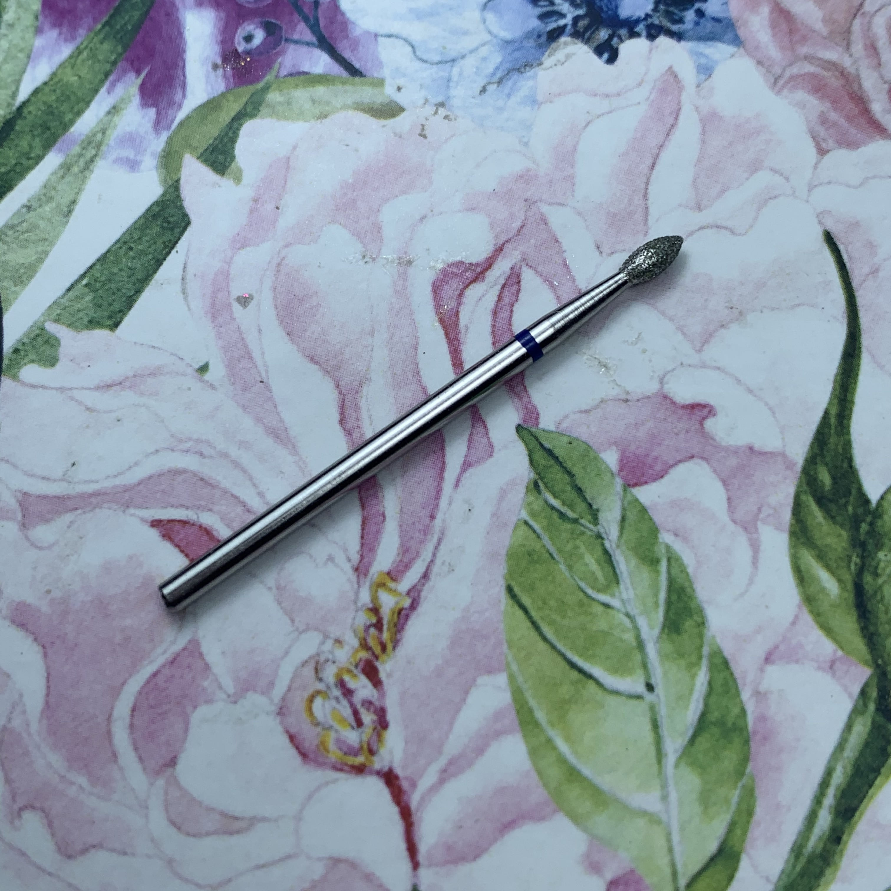 MATRIOSHKANAIL Punta diamantata, pesciolino, fascia blu Ø25, 1 pz .Punta si usa per alzare e rimuovere le cuticole, per i valli laterali, per rimuovere i sollevamenti durante il refill. Si puo’ sterilizzare e disinfettare.