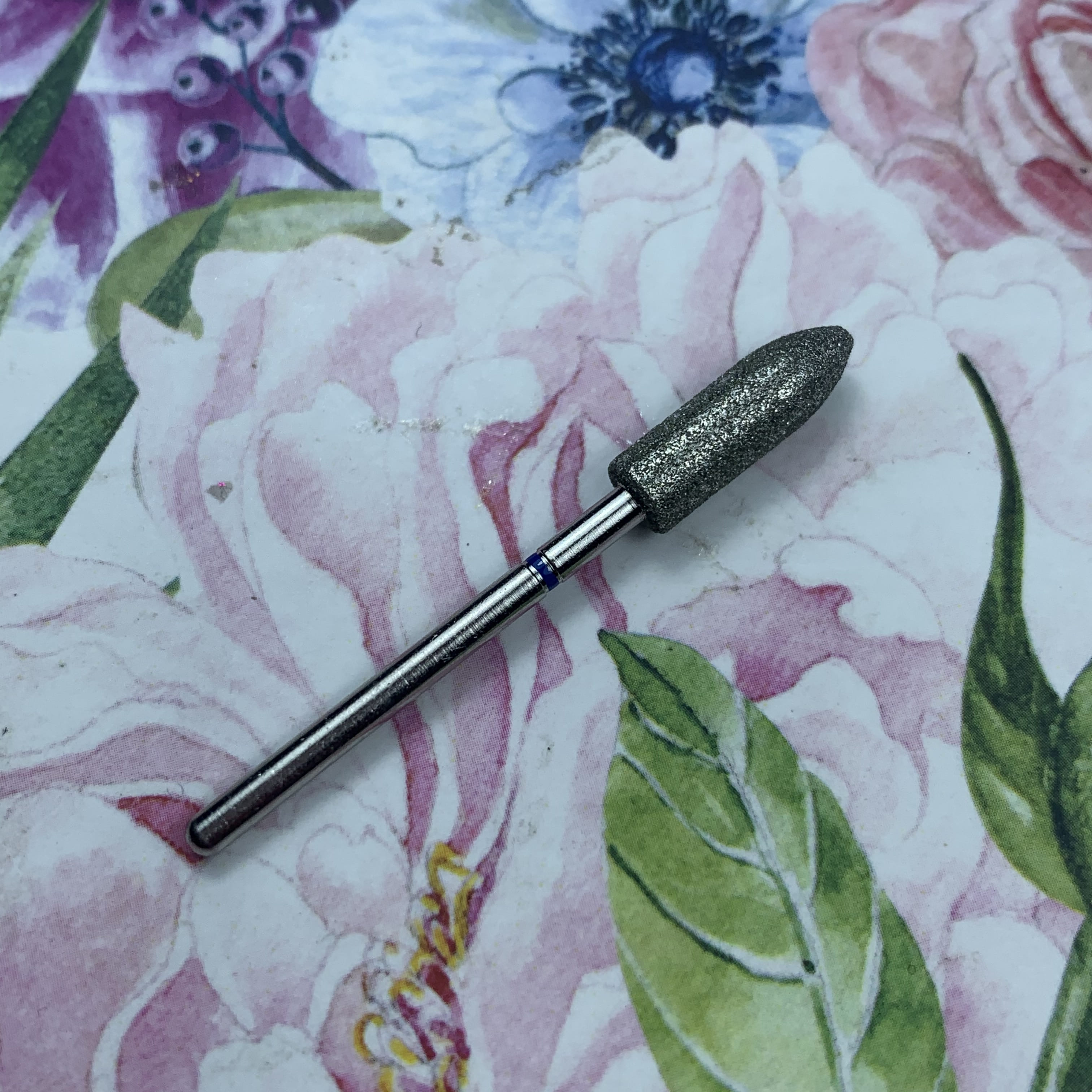 MATRIOSHKANAIL Punta diamantata, siluro, fascia blu Ø50, 1 pz .Punta si usa per alzare e rimuovere le cuticole, per i valli laterali, per rimuovere i sollevamenti durante il refill. Si puo’ sterilizzare e disinfettare.