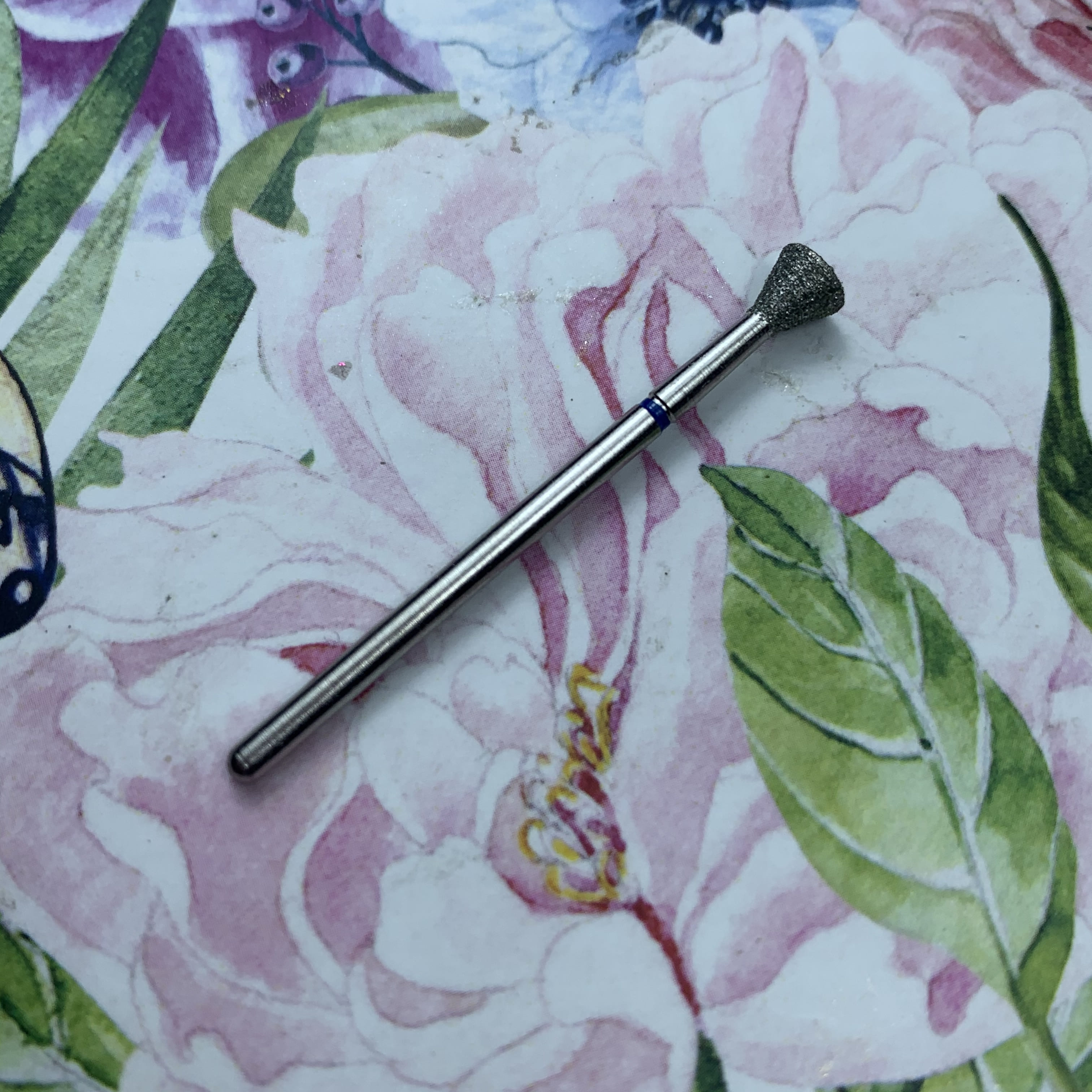 MATRIOSHKANAIL Punta diamantata, cono inverso, fascia blu Ø50, 1 pz .Punta si usa per alzare e rimuovere le cuticole, per i valli laterali, per rimuovere i sollevamenti durante il refill. Si puo’ sterilizzare e disinfettare.