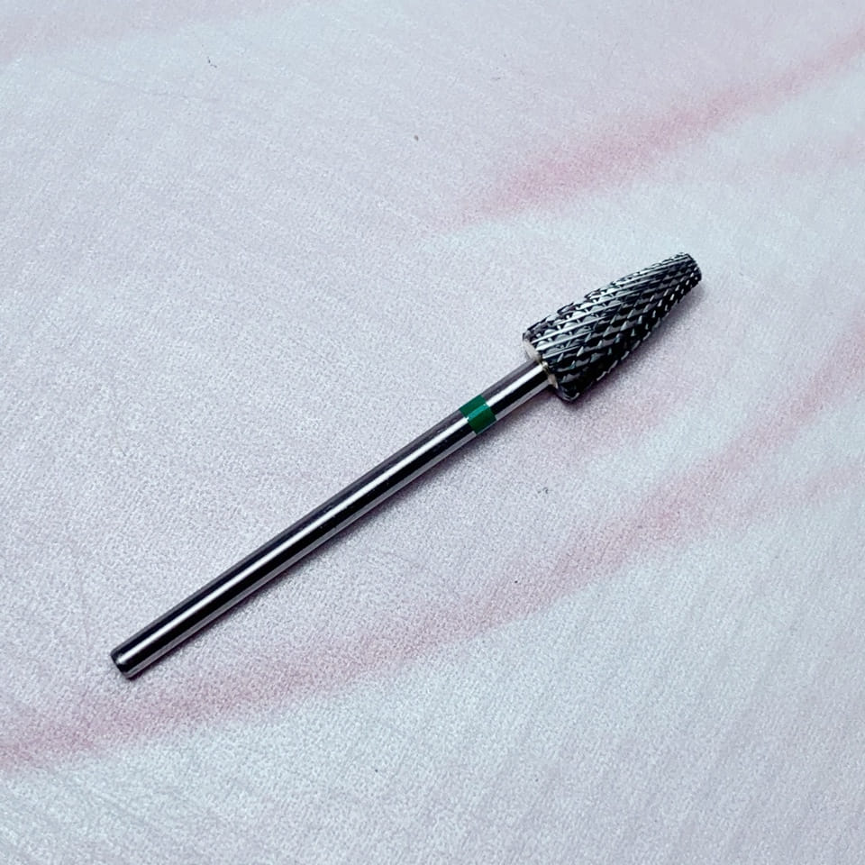 MATRIOSHKANAIL Punta smontaggio, grana alta, fascia verde, c. 407001; 1 pz .Punta in carburo di tungsteno MADE IN RUSSIA per la correzione di unghie in gel, per la rimozione del gel da sotto il bordo libero, correzione di forma e lunghezza. Può essere utilizzata per la rimozione dei sollevamenti, rimuovere gel, smalto semipermanente e pedicure. Non si arrugginisce, puo' essere disinfettata e sterilizzata.