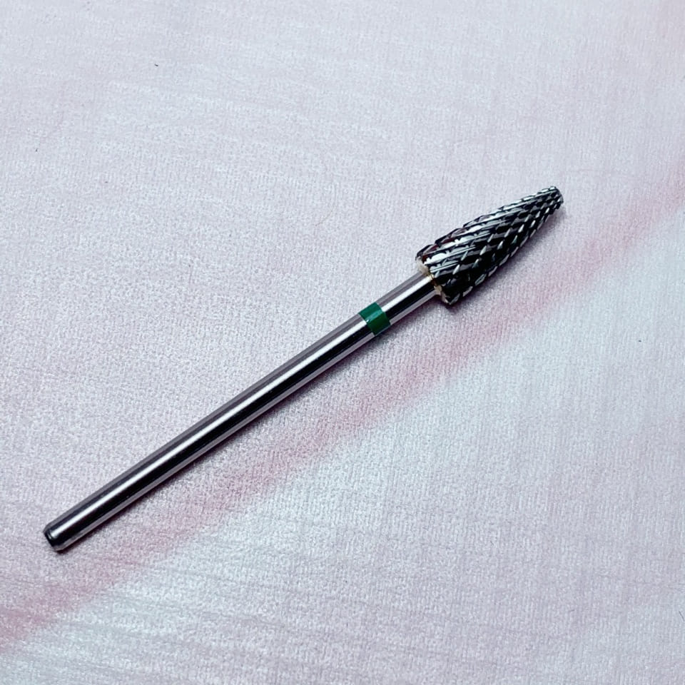 MATRIOSHKANAIL Punta smontaggio, grana alta, fascia verde, c. 406001; 1 pz .Punta in carburo di tungsteno MADE IN RUSSIA per la correzione di unghie in gel, per la rimozione del gel da sotto il bordo libero, correzione di forma e lunghezza. Può essere utilizzata per la rimozione dei sollevamenti, rimuovere gel, smalto semipermanente e pedicure. Non si arrugginisce, puo' essere disinfettata e sterilizzata.