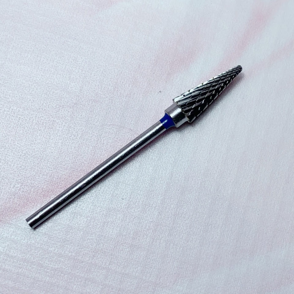 MATRIOSHKANAIL Punta smontaggio, grana media, fascia blu, c. 31160; 1 pz .Punta in carburo di tungsteno MADE IN RUSSIA per la correzione di unghie in gel, per la rimozione del gel da sotto il bordo libero, correzione di forma e lunghezza. Può essere utilizzata per la rimozione dei sollevamenti, rimuovere gel, smalto semipermanente e pedicure. Non si arrugginisce, puo' essere disinfettata e sterilizzata.