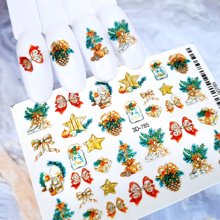 ANNA TKACHEVA Water decal 3D Crystal HT3D785, 1 pz. Istruzioni per l'uso: 1. Effettuare una preparazione standard della lamina ungueale.2. Selezionare il modello appropriato, tagliare l'immagine alla dimensione dell'unghia. 3. Applicare la base,polimerizzare. Applicare uno strato sottile del semipermanente bianco, se richiesto dal design del water decal. Polimerizzare. 4. Applicare uno strato sottile della base. Non polimerizzare. 5. Mettere il water decal su un disco di cotone inumidito con acqua calda (non fredda!) Per circa 10-15 secondi. Spostarlo trasferendo la pellicola sull'unghia. Raddrizzare la pellicola, tirando leggermente verso l'alto il bordo libero. Distendere con cura le pieghe, estraendo i resti di aria e acqua con un panno morbido, un pennello piatto o con le dita. Polimerizzare a tempo pieno. (UV - 2 min, led -30-60 sec). 6. Utilizzando la lima fine, dall'alto verso il basso, rimuovere delicatamente la pellicola in eccesso dal bordo libero dell'unghia. 7. Coprire 2 volte con il top coat, ben sigillando il bordo libero.