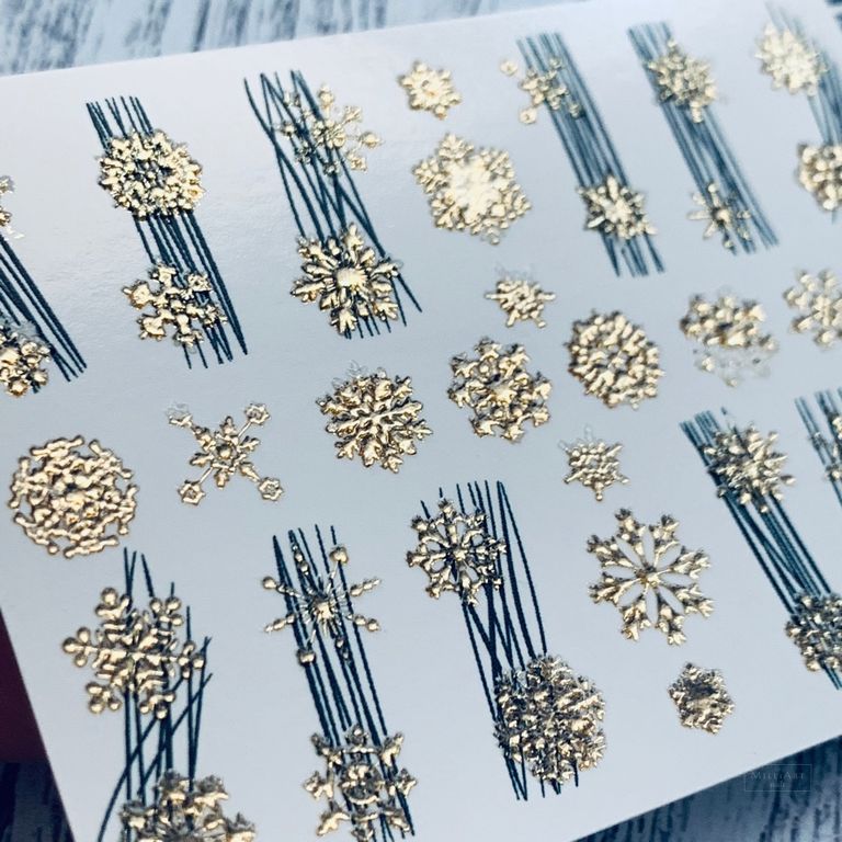 ANNA TKACHEVA 3D GOLD CRYSTAL 3D-191, 1 pz. Istruzioni per l'uso: 1. Effettuare una preparazione standard della lamina ungueale.2. Selezionare il modello appropriato, tagliare l'immagine alla dimensione dell'unghia. 3. Applicare la base,polimerizzare. Applicare uno strato sottile del semipermanente bianco, se richiesto dal design del water decal. Polimerizzare. 4. Applicare uno strato sottile della base. Non polimerizzare. 5. Mettere il water decal su un disco di cotone inumidito con acqua calda (non fredda!) Per circa 10-15 secondi. Spostarlo trasferendo la pellicola sull'unghia. Raddrizzare la pellicola, tirando leggermente verso l'alto il bordo libero. Distendere con cura le pieghe, estraendo i resti di aria e acqua con un panno morbido, un pennello piatto o con le dita. Polimerizzare a tempo pieno. (UV - 2 min, led -30-60 sec). 6. Utilizzando la lima fine, dall'alto verso il basso, rimuovere delicatamente la pellicola in eccesso dal bordo libero dell'unghia. 7. Coprire 2 volte con il top coat, ben sigillando il bordo libero.