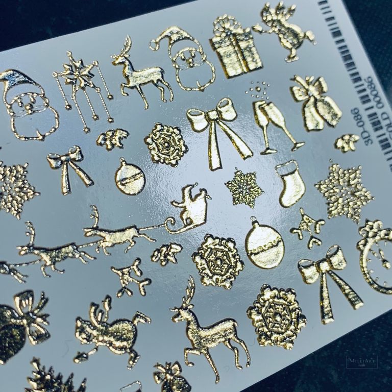 ANNA TKACHEVA 3D GOLD CRYSTAL 3D-86, 1 pz. Istruzioni per l'uso: 1. Effettuare una preparazione standard della lamina ungueale.2. Selezionare il modello appropriato, tagliare l'immagine alla dimensione dell'unghia. 3. Applicare la base,polimerizzare. Applicare uno strato sottile del semipermanente bianco, se richiesto dal design del water decal. Polimerizzare. 4. Applicare uno strato sottile della base. Non polimerizzare. 5. Mettere il water decal su un disco di cotone inumidito con acqua calda (non fredda!) Per circa 10-15 secondi. Spostarlo trasferendo la pellicola sull'unghia. Raddrizzare la pellicola, tirando leggermente verso l'alto il bordo libero. Distendere con cura le pieghe, estraendo i resti di aria e acqua con un panno morbido, un pennello piatto o con le dita. Polimerizzare a tempo pieno. (UV - 2 min, led -30-60 sec). 6. Utilizzando la lima fine, dall'alto verso il basso, rimuovere delicatamente la pellicola in eccesso dal bordo libero dell'unghia. 7. Coprire 2 volte con il top coat, ben sigillando il bordo libero.
