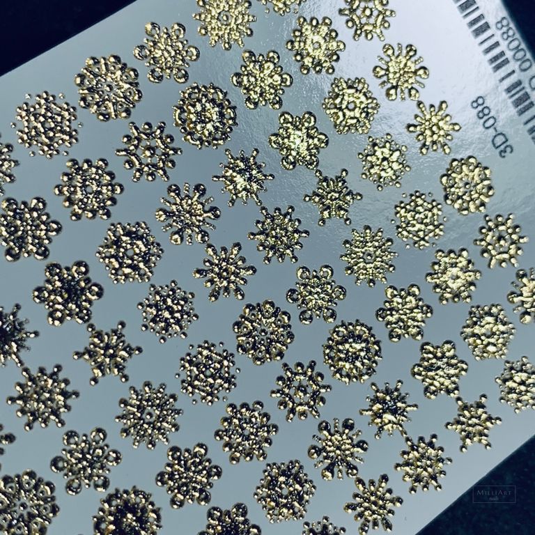 ANNA TKACHEVA 3D GOLD CRYSTAL 3D-88, 1 pz. Istruzioni per l'uso: 1. Effettuare una preparazione standard della lamina ungueale.2. Selezionare il modello appropriato, tagliare l'immagine alla dimensione dell'unghia. 3. Applicare la base,polimerizzare. Applicare uno strato sottile del semipermanente bianco, se richiesto dal design del water decal. Polimerizzare. 4. Applicare uno strato sottile della base. Non polimerizzare. 5. Mettere il water decal su un disco di cotone inumidito con acqua calda (non fredda!) Per circa 10-15 secondi. Spostarlo trasferendo la pellicola sull'unghia. Raddrizzare la pellicola, tirando leggermente verso l'alto il bordo libero. Distendere con cura le pieghe, estraendo i resti di aria e acqua con un panno morbido, un pennello piatto o con le dita. Polimerizzare a tempo pieno. (UV - 2 min, led -30-60 sec). 6. Utilizzando la lima fine, dall'alto verso il basso, rimuovere delicatamente la pellicola in eccesso dal bordo libero dell'unghia. 7. Coprire 2 volte con il top coat, ben sigillando il bordo libero.