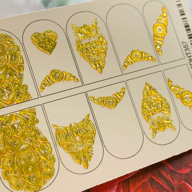 ANNA TKACHEVA Water decal 3D Crystal HT3D357, 1 pz. Istruzioni per l'uso: 1. Effettuare una preparazione standard della lamina ungueale.2. Selezionare il modello appropriato, tagliare l'immagine alla dimensione dell'unghia. 3. Applicare la base,polimerizzare. Applicare uno strato sottile del semipermanente bianco, se richiesto dal design del water decal. Polimerizzare. 4. Applicare uno strato sottile della base. Non polimerizzare. 5. Mettere il water decal su un disco di cotone inumidito con acqua calda (non fredda!) Per circa 10-15 secondi. Spostarlo trasferendo la pellicola sull'unghia. Raddrizzare la pellicola, tirando leggermente verso l'alto il bordo libero. Distendere con cura le pieghe, estraendo i resti di aria e acqua con un panno morbido, un pennello piatto o con le dita. Polimerizzare a tempo pieno. (UV - 2 min, led -30-60 sec). 6. Utilizzando la lima fine, dall'alto verso il basso, rimuovere delicatamente la pellicola in eccesso dal bordo libero dell'unghia. 7. Coprire 2 volte con il top coat, ben sigillando il bordo libero.