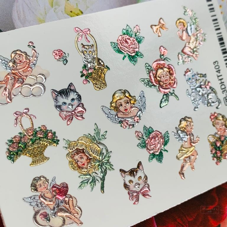 ANNA TKACHEVA Water decal 3D Crystal HT3D403, 1 pz. Istruzioni per l'uso: 1. Effettuare una preparazione standard della lamina ungueale.2. Selezionare il modello appropriato, tagliare l'immagine alla dimensione dell'unghia. 3. Applicare la base,polimerizzare. Applicare uno strato sottile del semipermanente bianco, se richiesto dal design del water decal. Polimerizzare. 4. Applicare uno strato sottile della base. Non polimerizzare. 5. Mettere il water decal su un disco di cotone inumidito con acqua calda (non fredda!) Per circa 10-15 secondi. Spostarlo trasferendo la pellicola sull'unghia. Raddrizzare la pellicola, tirando leggermente verso l'alto il bordo libero. Distendere con cura le pieghe, estraendo i resti di aria e acqua con un panno morbido, un pennello piatto o con le dita. Polimerizzare a tempo pieno. (UV - 2 min, led -30-60 sec). 6. Utilizzando la lima fine, dall'alto verso il basso, rimuovere delicatamente la pellicola in eccesso dal bordo libero dell'unghia. 7. Coprire 2 volte con il top coat, ben sigillando il bordo libero.