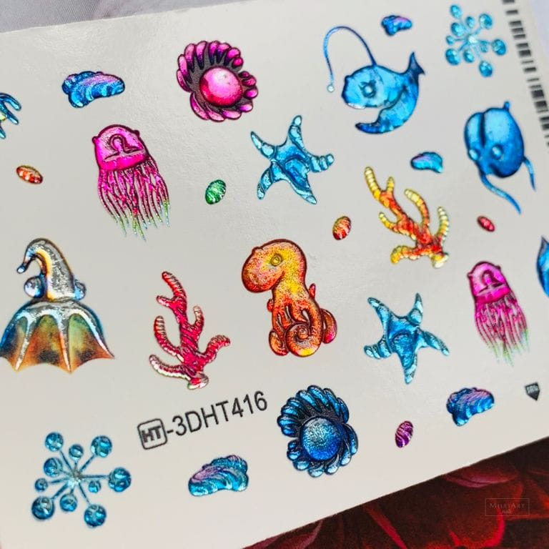 ANNA TKACHEVA Water decal 3D Crystal HT3D416, 1 pz. Istruzioni per l'uso: 1. Effettuare una preparazione standard della lamina ungueale.2. Selezionare il modello appropriato, tagliare l'immagine alla dimensione dell'unghia. 3. Applicare la base,polimerizzare. Applicare uno strato sottile del semipermanente bianco, se richiesto dal design del water decal. Polimerizzare. 4. Applicare uno strato sottile della base. Non polimerizzare. 5. Mettere il water decal su un disco di cotone inumidito con acqua calda (non fredda!) Per circa 10-15 secondi. Spostarlo trasferendo la pellicola sull'unghia. Raddrizzare la pellicola, tirando leggermente verso l'alto il bordo libero. Distendere con cura le pieghe, estraendo i resti di aria e acqua con un panno morbido, un pennello piatto o con le dita. Polimerizzare a tempo pieno. (UV - 2 min, led -30-60 sec). 6. Utilizzando la lima fine, dall'alto verso il basso, rimuovere delicatamente la pellicola in eccesso dal bordo libero dell'unghia. 7. Coprire 2 volte con il top coat, ben sigillando il bordo libero.