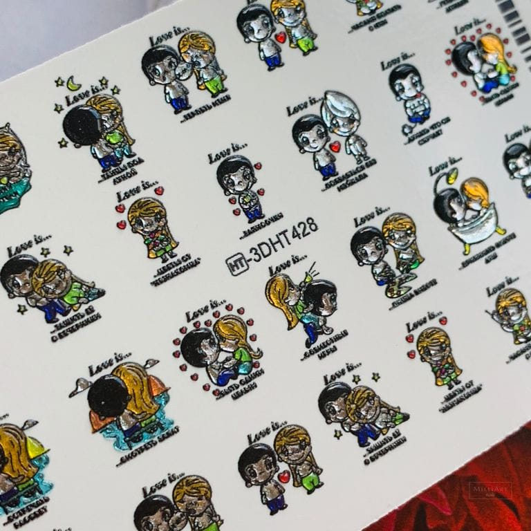 ANNA TKACHEVA Water decal 3D Crystal HT3D428, 1 pz. Istruzioni per l'uso: 1. Effettuare una preparazione standard della lamina ungueale.2. Selezionare il modello appropriato, tagliare l'immagine alla dimensione dell'unghia. 3. Applicare la base,polimerizzare. Applicare uno strato sottile del semipermanente bianco, se richiesto dal design del water decal. Polimerizzare. 4. Applicare uno strato sottile della base. Non polimerizzare. 5. Mettere il water decal su un disco di cotone inumidito con acqua calda (non fredda!) Per circa 10-15 secondi. Spostarlo trasferendo la pellicola sull'unghia. Raddrizzare la pellicola, tirando leggermente verso l'alto il bordo libero. Distendere con cura le pieghe, estraendo i resti di aria e acqua con un panno morbido, un pennello piatto o con le dita. Polimerizzare a tempo pieno. (UV - 2 min, led -30-60 sec). 6. Utilizzando la lima fine, dall'alto verso il basso, rimuovere delicatamente la pellicola in eccesso dal bordo libero dell'unghia. 7. Coprire 2 volte con il top coat, ben sigillando il bordo libero.