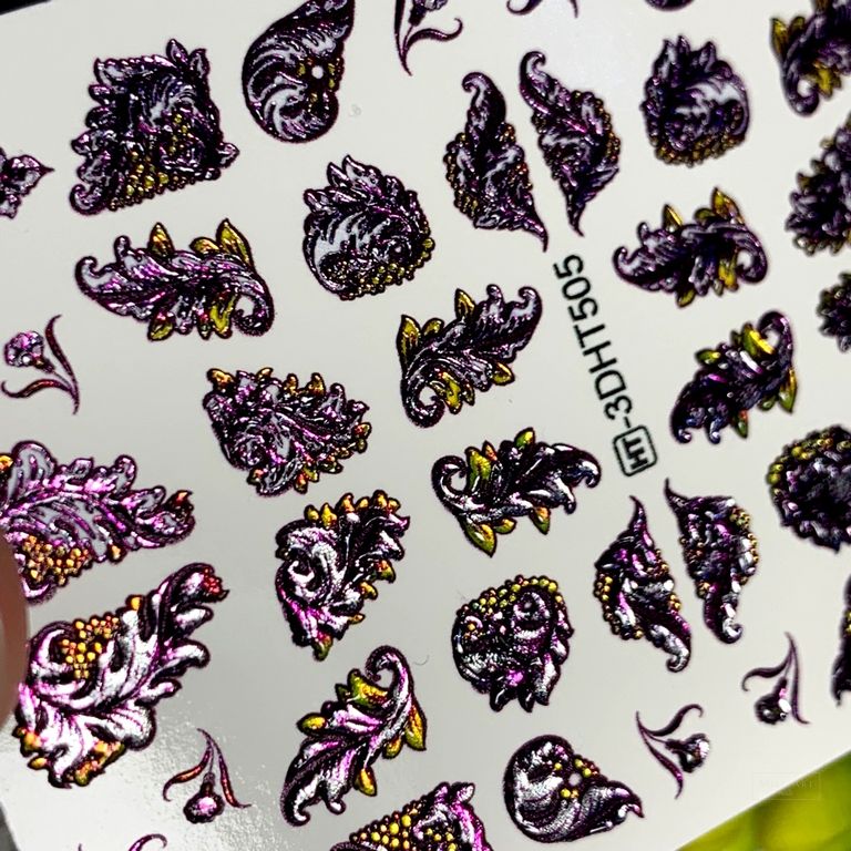 ANNA TKACHEVA Water decal 3D Crystal HT3D505, 1 pz. Istruzioni per l'uso: 1. Effettuare una preparazione standard della lamina ungueale.2. Selezionare il modello appropriato, tagliare l'immagine alla dimensione dell'unghia. 3. Applicare la base,polimerizzare. Applicare uno strato sottile del semipermanente bianco, se richiesto dal design del water decal. Polimerizzare. 4. Applicare uno strato sottile della base. Non polimerizzare. 5. Mettere il water decal su un disco di cotone inumidito con acqua calda (non fredda!) Per circa 10-15 secondi. Spostarlo trasferendo la pellicola sull'unghia. Raddrizzare la pellicola, tirando leggermente verso l'alto il bordo libero. Distendere con cura le pieghe, estraendo i resti di aria e acqua con un panno morbido, un pennello piatto o con le dita. Polimerizzare a tempo pieno. (UV - 2 min, led -30-60 sec). 6. Utilizzando la lima fine, dall'alto verso il basso, rimuovere delicatamente la pellicola in eccesso dal bordo libero dell'unghia. 7. Coprire 2 volte con il top coat, ben sigillando il bordo libero.